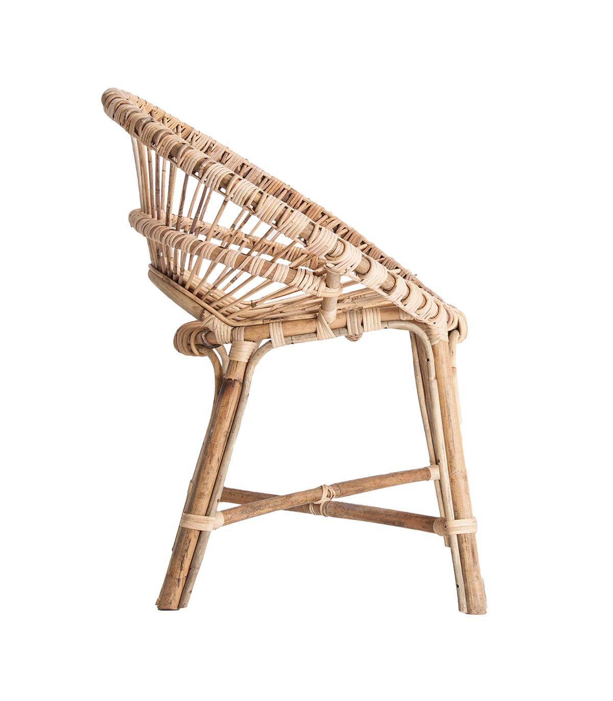 Sillón Chilaw de estilo contemporáneo fabricado en ratán en color marrón.