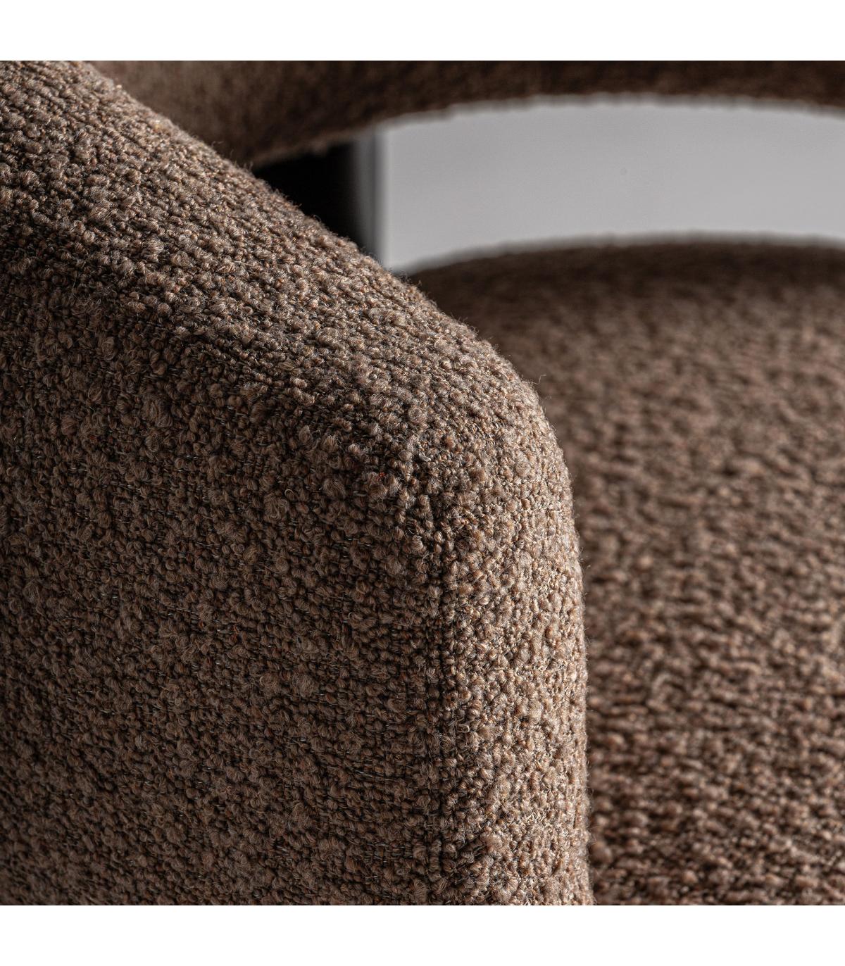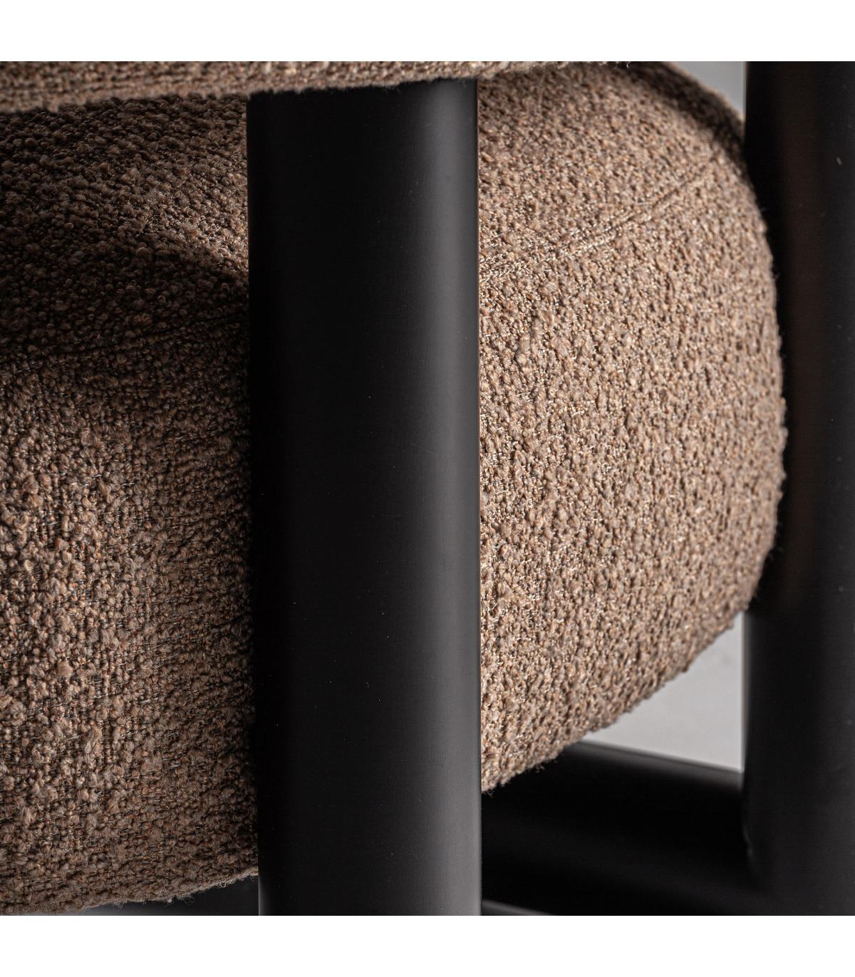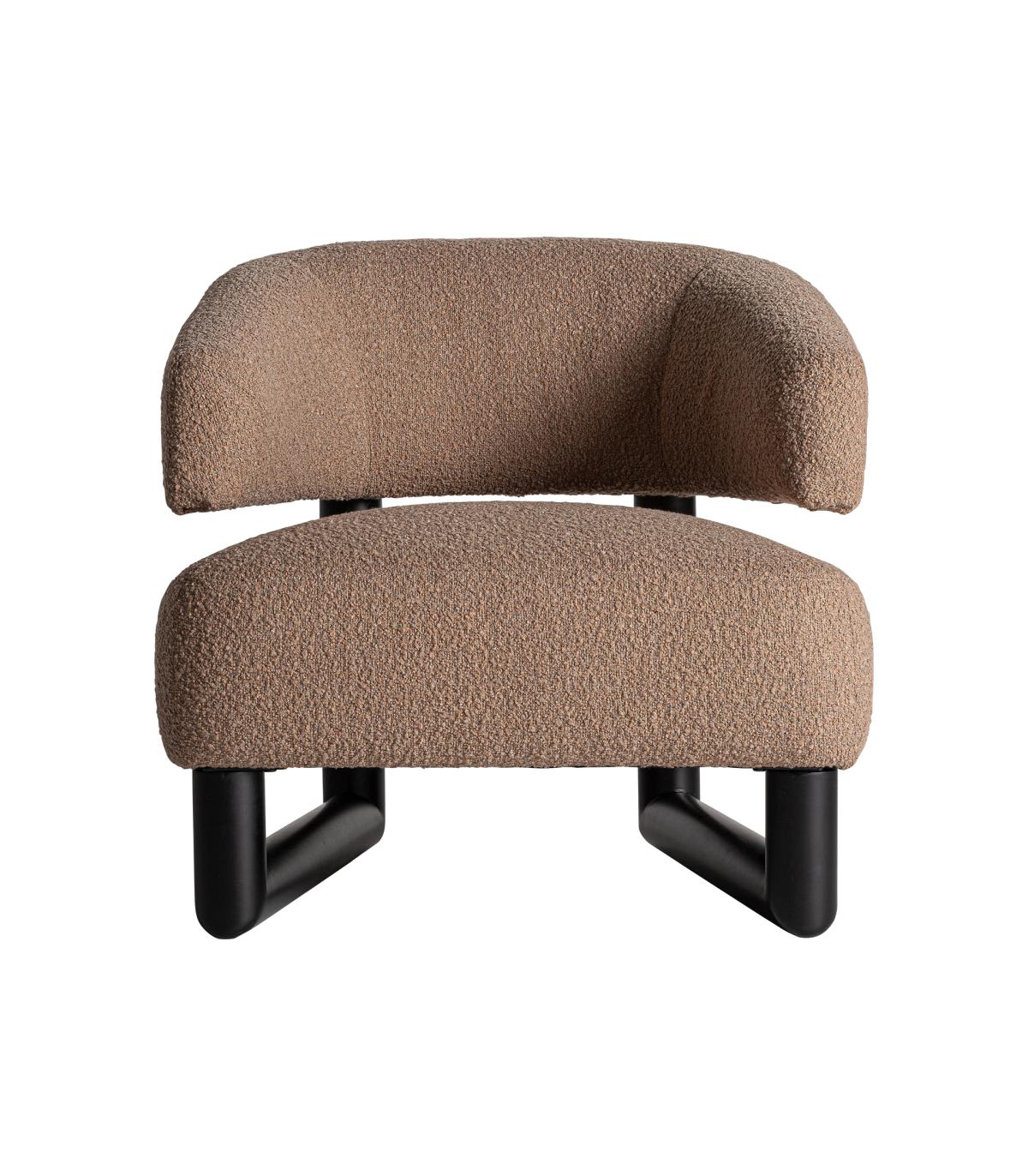 Sillón irvin de estilo contemporáneo fabricado en madera de pino en color negro combinado con poliéster en color marrón y madera de fresno.
