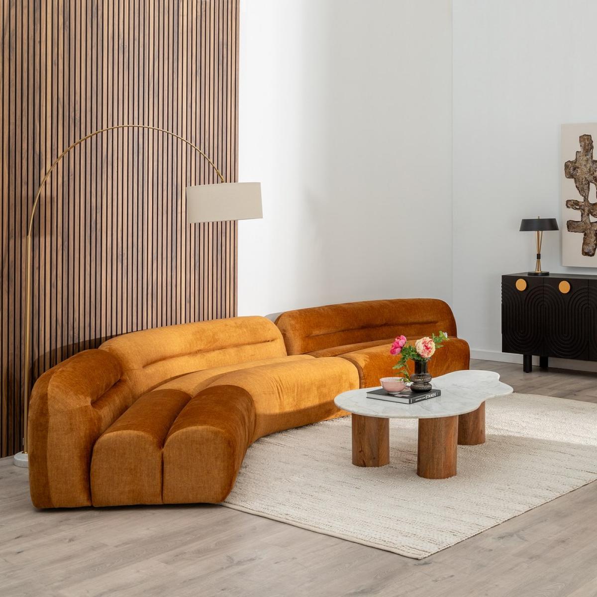 MÓDULO RECTO MOSTAZA TEJIDO SALÓN 102 X 94 X 64 CM Material: tejido (100% poliéster). Estructura: madera contrachapada. Relleno: foam, densidad 25kg. Altura asiento: 40cm. Altura respaldo: 30cm. Cumple la normativa EN12520:2016.