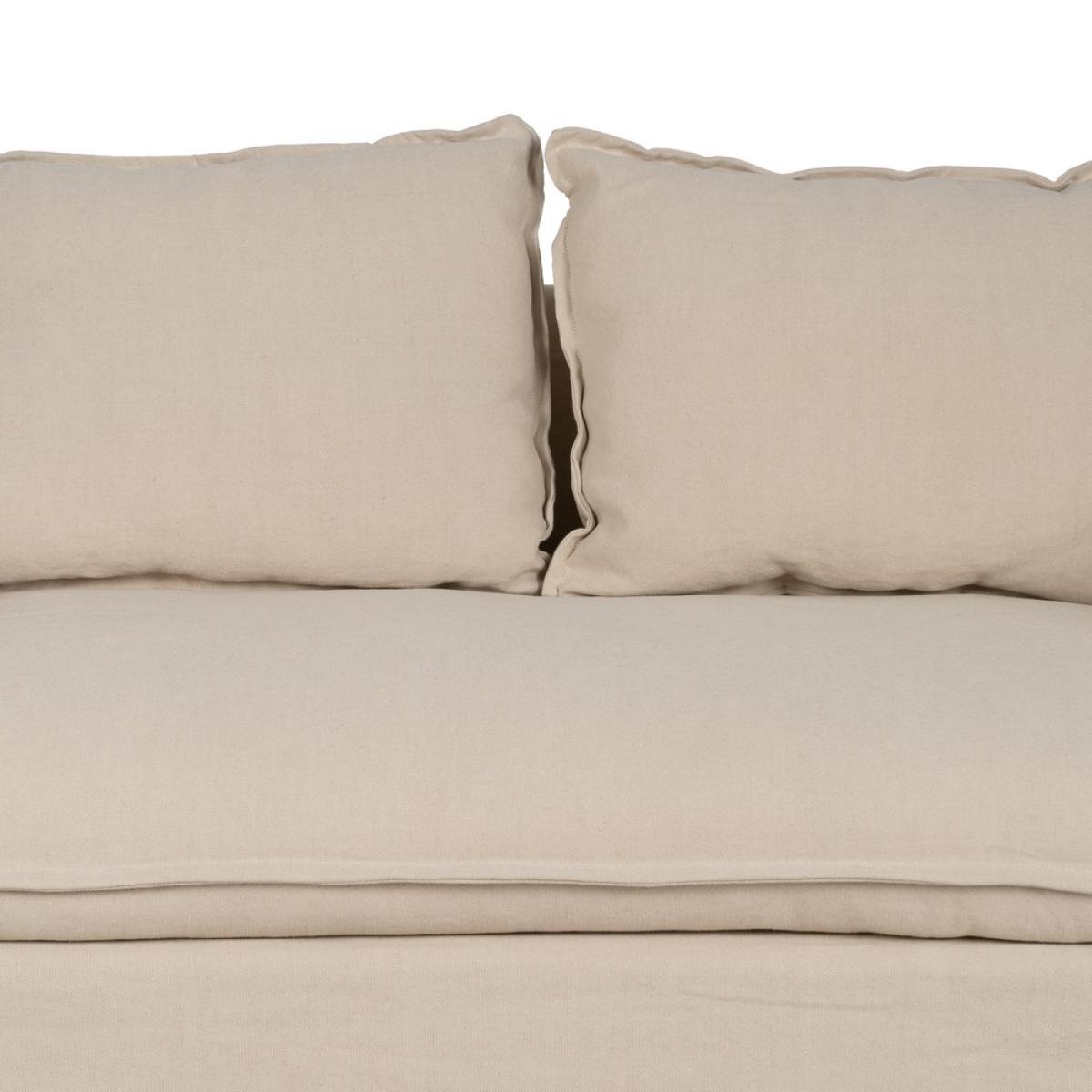 SOFÁ 2 PLAZAS CREMA TEJIDO-MADERA 160 X 95 X 85 CM TEJIDO: 40%LINO - 60% ALGODÓN. DESENFUNDABLE. ESTRUCTURA: MADERA DE PINO. RELLENO DEL ASIENTO: FOAM Y PLUMA. RELLENO DEL RESPALDO:FOAM Y PLUMA. CIERRE DE LOS COJINES CON CREMALLERA. COLOR DE LAS PATAS NEGRO. PESO MÁXIMO SOPORTADO: 300KG. DENSIDAD:39KG/M3. LAVADO EN SECO. NO USAR PLANCHA. ALTURA DEL ASIENTO:47CM. ALTURA DEL REPOSABRAZOS:65CM CUMPLE CON LA NORMATIVA UNE-EN 12520-2016.