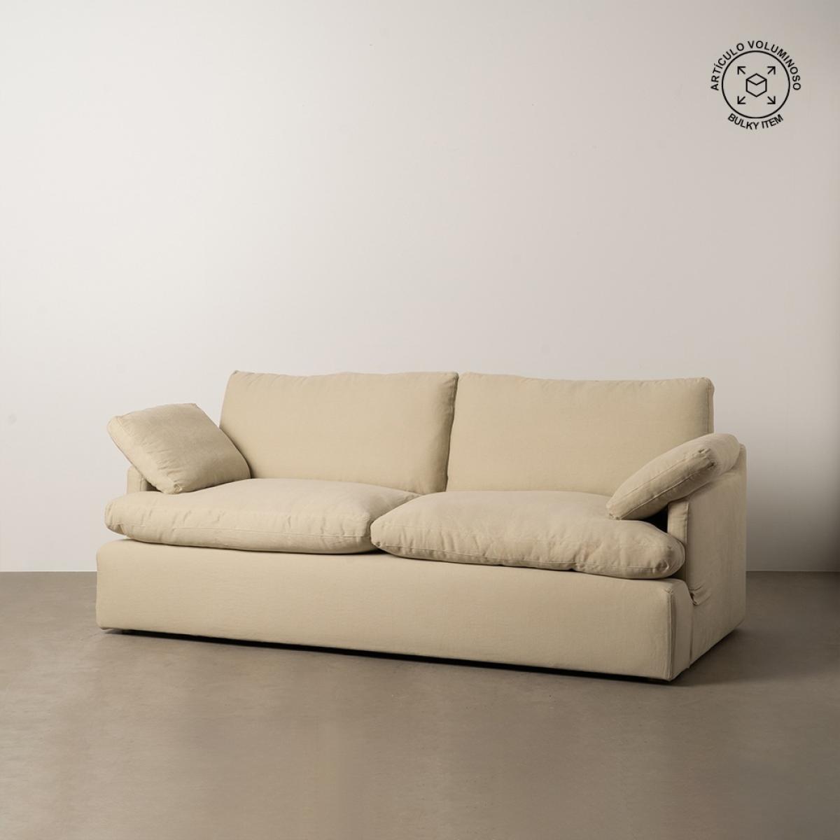SOFÁ 3 PLAZAS BEIGE TEJIDO-MADERA 212 X 100 X 83 CM TEJIDO: 35%LINO - 65% ALGODÓN. DESENFUNDABLE. ESTRUCTURA: MADERA DE PINO. RELLENO DEL ASIENTO: FOAM Y PLUMA. RELLENO DEL RESPALDO:FOAM Y PLUMA. CIERRE DE LOS COJINES CON CREMALLERA. LAS PATAS REQUIEREN MONTAJE. COLOR DE LAS PATAS NEGRO. PESO MÁXIMO SOPORTADO: 330KG. DENSIDAD:39KG/M3. LAVADO EN SECO. NO USAR PLANCHA. ALTURA DEL ASIENTO:50CM. ALTURA DEL REPOSABRAZOS:59CM ANCHO DEL BRAZO:10CM. CUMPLE CON LA NORMATIVA UNE-EN 12520-2016.