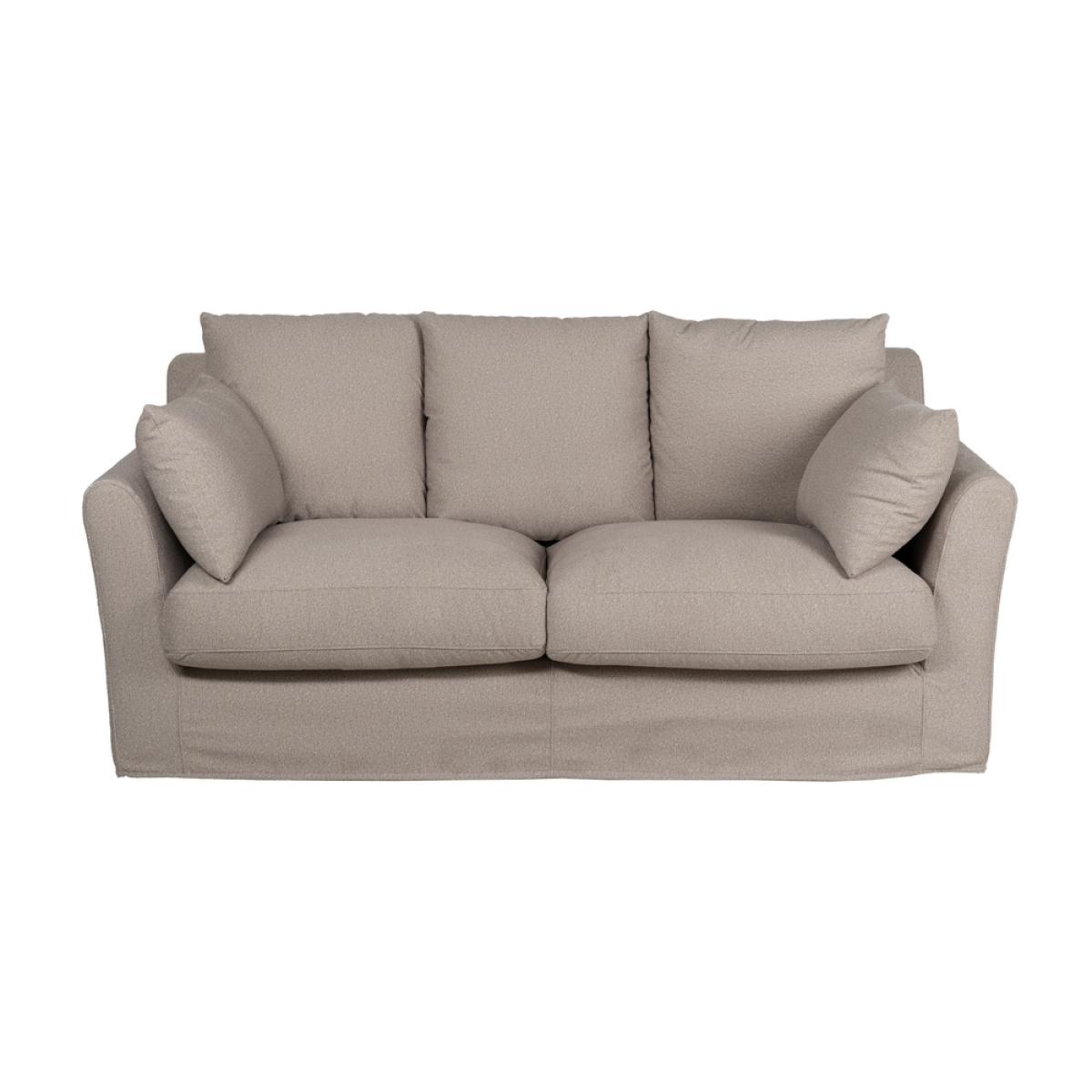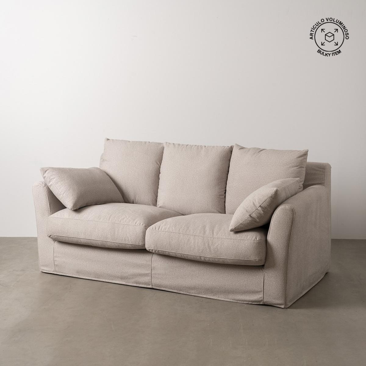 SOFÁ BEIGE TEJIDO SALÓN 200 X 102 X 100 CM Estructura: madera de pino. Suspensión: cincha elástica Nea. Relleno: asiento de de fibra y pluma con goma de poliuretano de 30kg y respaldo de fibra siliconada y pluma. Cojines y estructura desenfundables. Altura asiento: 53cm. Ancho asiento: 130cm. Profundidad asiento: 64cm. Altura respaldo: 50cm. Altura reposabrazos: 20cm. Altura patas: 3cm.