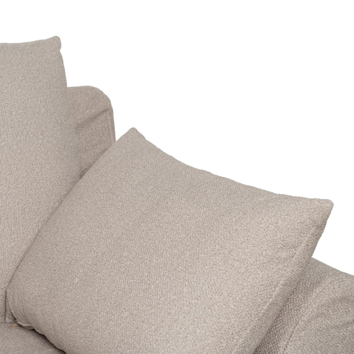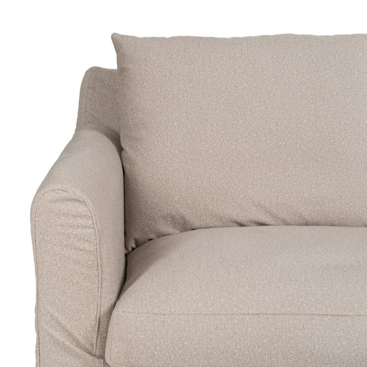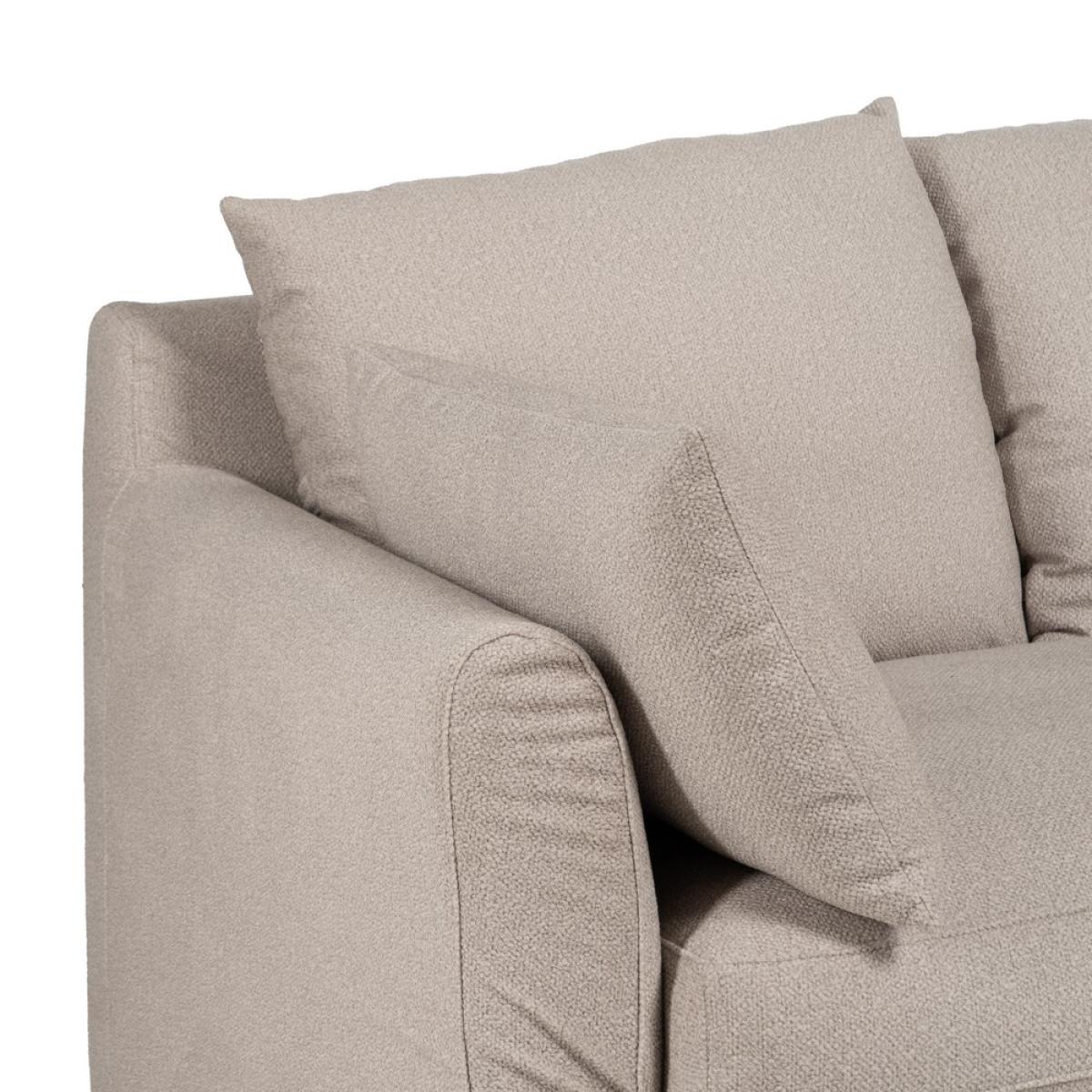 SOFÁ BEIGE TEJIDO SALÓN 245 X 102 X 100 CM Tejido: Estructura: madera de pino. Suspensión: cincha elástica Nea. Relleno: asiento de de fibra y pluma con goma de poliuretano de 30kg y respaldo de fibra siliconada y pluma. Cojines y estructura desenfundables. Altura asiento: 53cm. Ancho asiento: 210cm. Profundidad asiento: 64cm. Altura respaldo: 50cm. Altura reposabrazos: 20cm. Altura patas: 3cm.