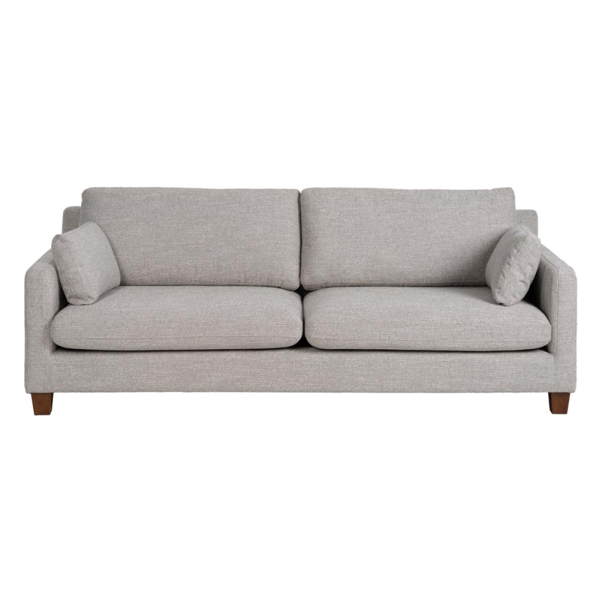SOFÁ 3 PLAZAS GRIS TEJIDO-MADERA 221 X 90 X 87 CM Material: estructura madera Patas: madera de caucho Tejido: 100% poliéster Gramaje: 390gsm. Cojines respaldo, laterales y asiento desenfundables con cremallera. Medida cojines laterales: 50x30cm. Altura respaldo (desde asiento): 48cm. Profundo asiento: 55cm. Ancho asiento: 198cm. Altura reposabrazos (desde suelo):62cm. Altura asiento: 44cm. Altura patas: 10cm. Patas para montar. Cumple normativa: EN12520:2016