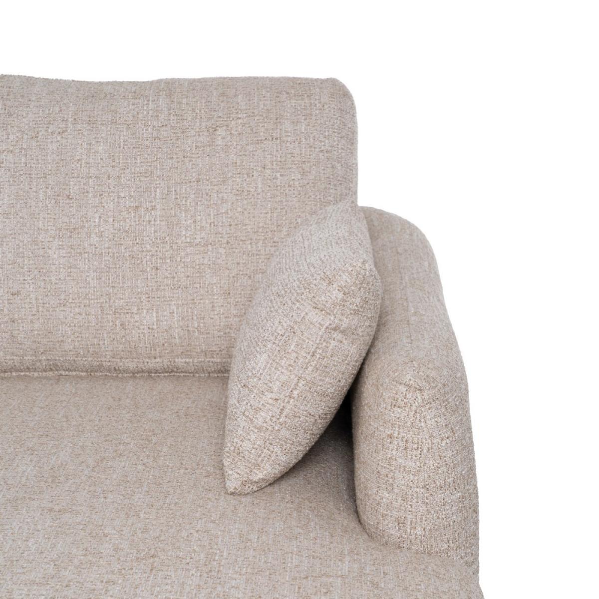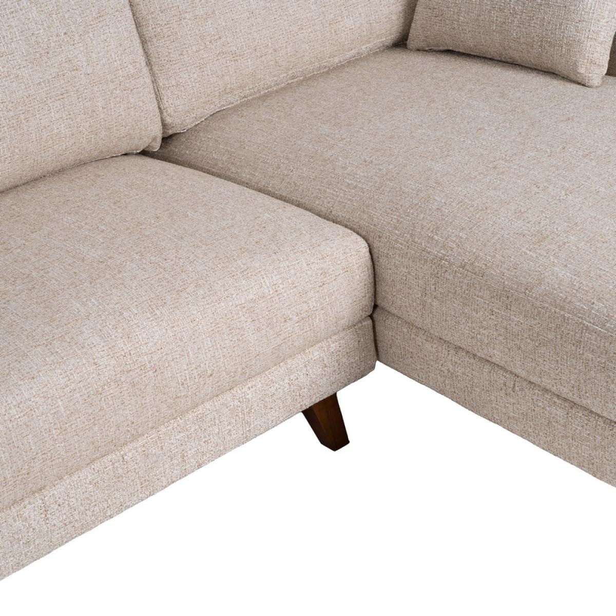 SOFÁ CHAISE LONGUE BEIGE TEJIDO-MADERA 240 X 155 X 86 CM Material: estructura madera Patas: madera de caucho Tejido: 100% poliéster Gramaje: 390gsm. Cojines respaldo y laterales desenfundables con cremallera. Cojines asientos fijos no desenfundables. Medida cojines laterales: 45x28cm. Altura respaldo (desde asiento): 44cm. Profundo asiento: 55cm. Ancho asiento: 216cm Altura reposabrazos(desde suelo): 83cm. Altura asiento: 46cm. Altura patas: 13.5cm. Profundo asiento chaise longue: 117cm. Medida chaise longue: 88x150x86cm. Patas para montar. Cumple normativa: EN12520:2016