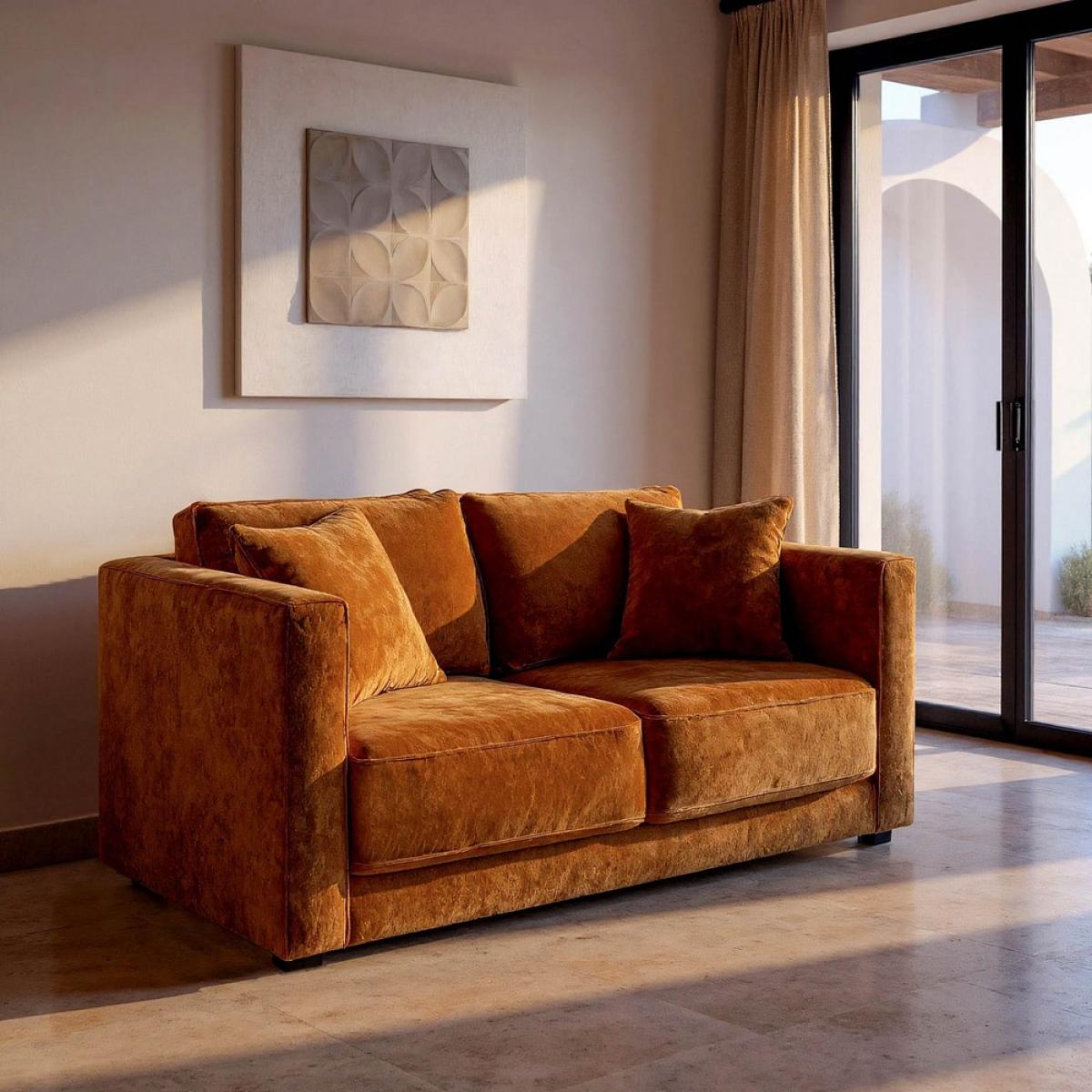 ASIENTOS Y SIMILARES - SOFÁS 615448 - SOFÁ 2 PLAZAS OCRE TEJIDO-MADERA 165 X 96 X 86 CM