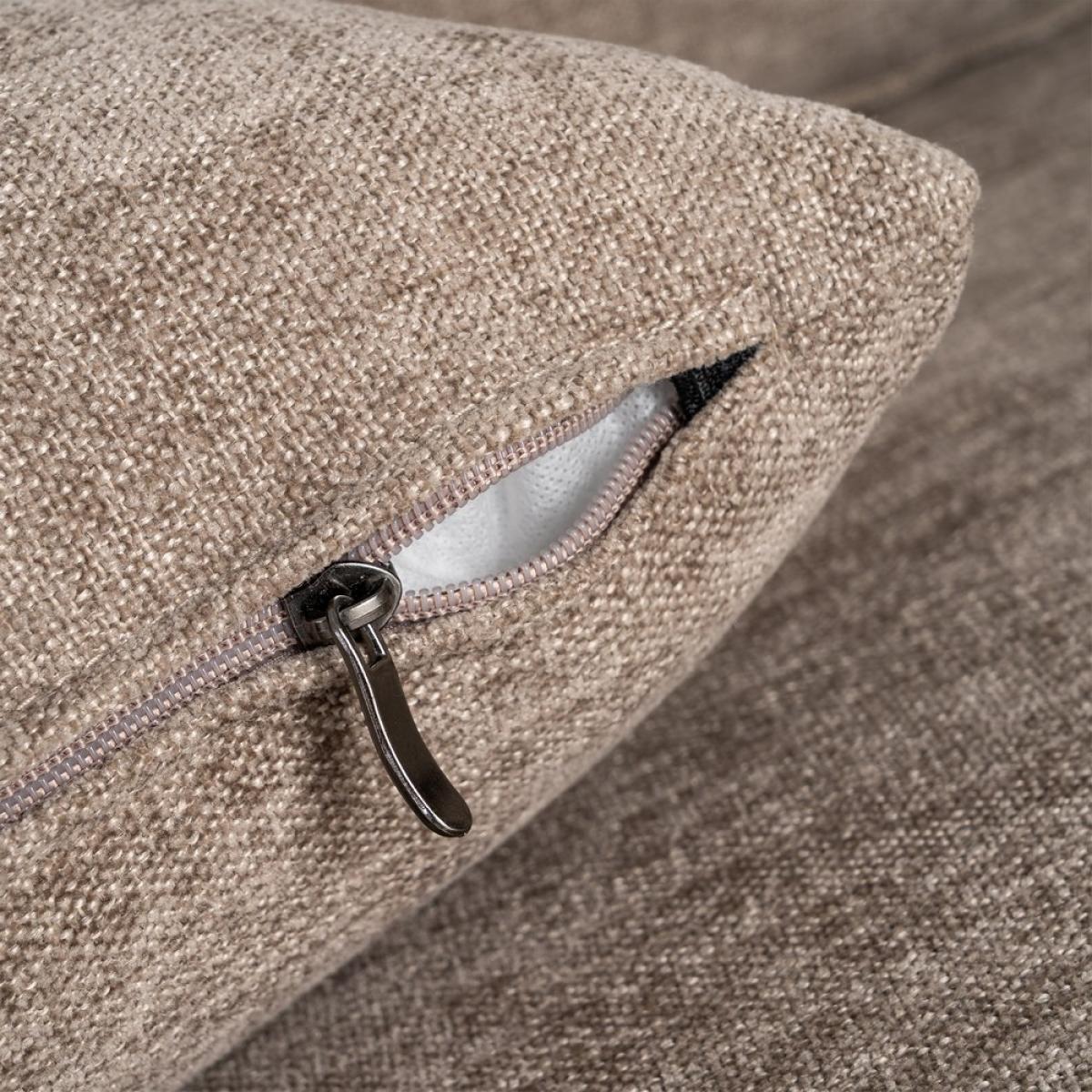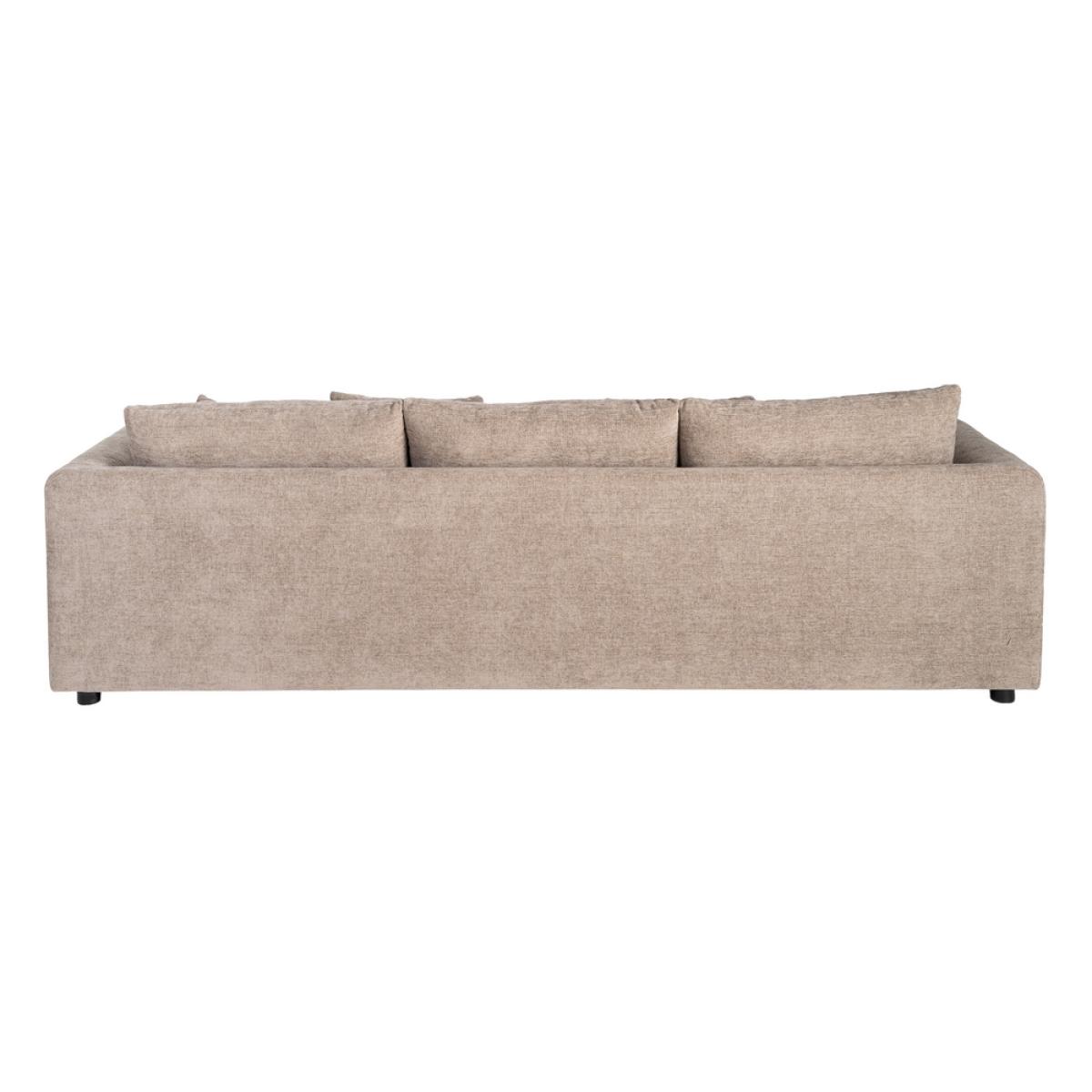 SOFÁ CHAISE LONGUE IZQ./DCHA. 260 X 164 X 76 CM Material: 100% poliéster. Patas: madera de caucho Patas para montar. Asiento: Foam 32kgr./m3. Trasera: Foam 23Kgr./m3. Respaldo: fibra. Medida cojines: respaldo 77x48 - decoración 45x45 - 54x34cm. Cojines desenfundables con cremallera. Medida sofá 3 plazas: 1.94x1.17x76cm. Medida chaise: 1.54x1.64x76cm. Altura asiento: 44cm. Ancho asiento: 217cm. Profundo asiento: 70cm. Altura respaldo: 48cm. Altura reposabrazos desde el suelo: 66cm. Cumple normativa: EN12520:2025