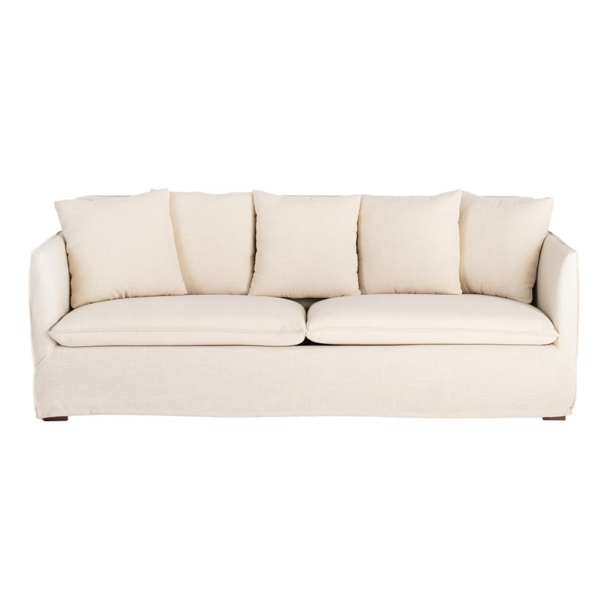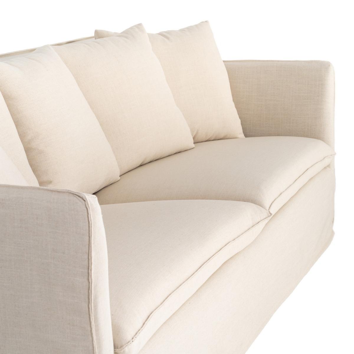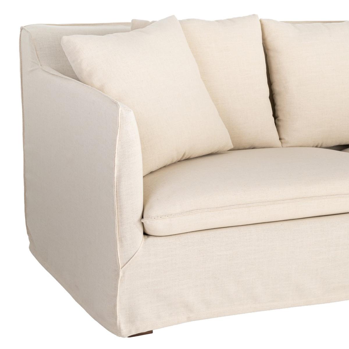 SOFÁ BEIGE TEJIDO SALÓN 215 X 92 X 78 CM Sofá desenfundable. Tejido: 58% poliéster reciclado, 34% poliéster, 8% lino. Estructura en madera maciza y tablero de partículas recubierto de goma de poliuretano. Asiento realizado con goma sándwich de 28 y 35 kg/m3 de densidad. Respaldo de fibra hueca siliconada. Suspensión de asiento y respaldo con cincha elástica. Altura asiento: 44cm. Ancho asiento: 193cm. Profundidad asiento: 50cm. Altura respaldo: 50cm. Altura reposabrazos: 30cm. Permite lavado a máquina máx 40ºC. No utilizar lejías. No planchar. Permite secado a máquina a temperatura media. Permite lavado en seco. Lavados frecuentes podrían afectar a las propiedades del artículo.