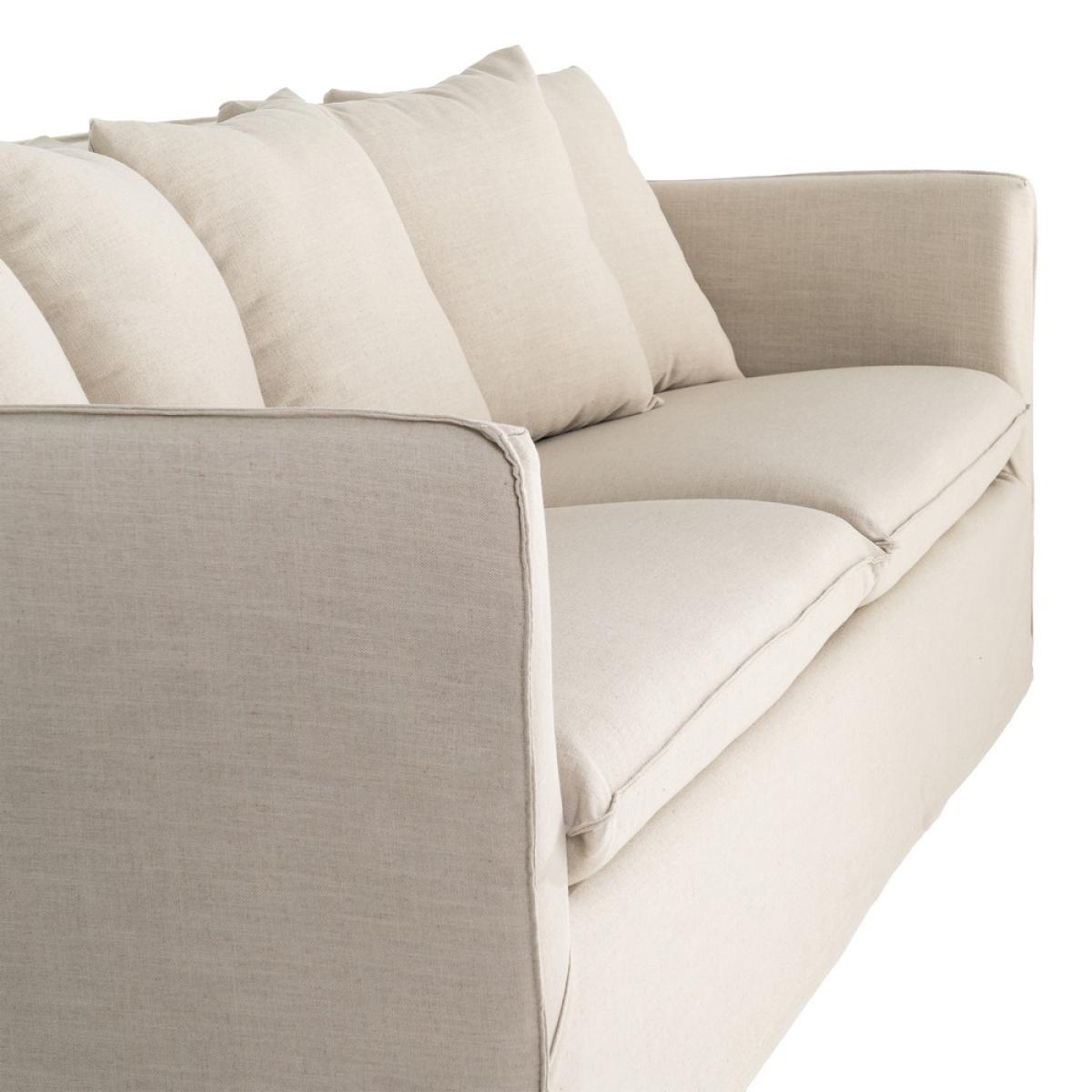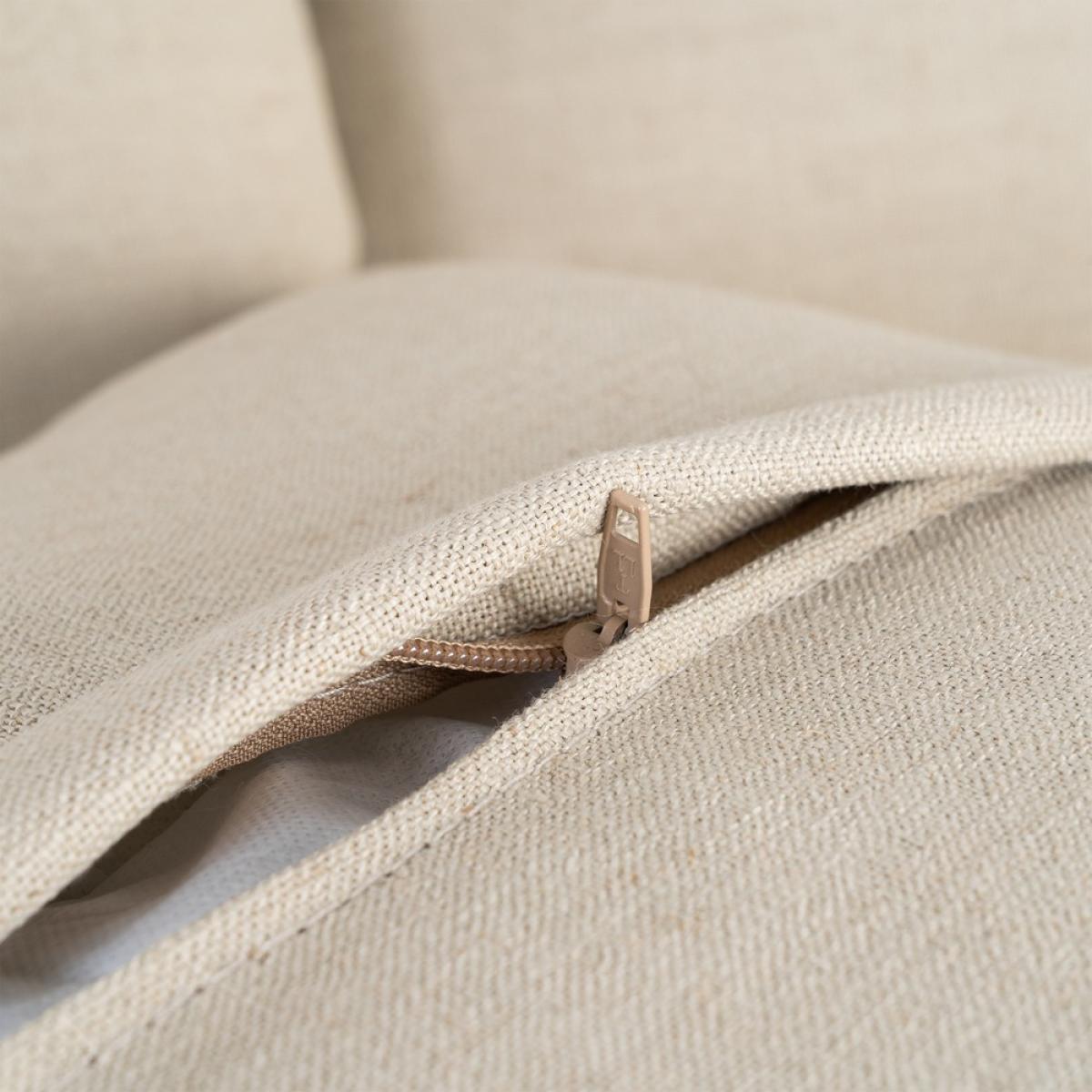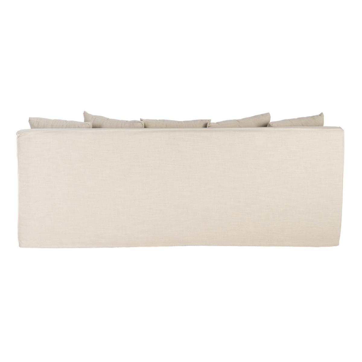 SOFÁ TAUPE TEJIDO SALÓN 215 X 92 X 78 CM Sofá desenfundable. Tejido: 58% poliéster reciclado, 34% poliéster, 8% lino. Estructura en madera maciza y tablero de partículas recubierto de goma de poliuretano. Asiento realizado con goma sándwich de 28 y 35 kg/m3 de densidad. Respaldo de fibra hueca siliconada. Suspensión de asiento y respaldo con cincha elástica. Altura asiento: 44cm. Ancho asiento: 193cm. Profundidad asiento: 50cm. Altura respaldo: 50cm. Altura reposabrazos: 30cm. Permite lavado a máquina máx 40ºC. No utilizar lejías. No planchar. Permite secado a máquina a temperatura media. Permite lavado en seco. Lavados frecuentes podrían afectar a las propiedades del artículo.