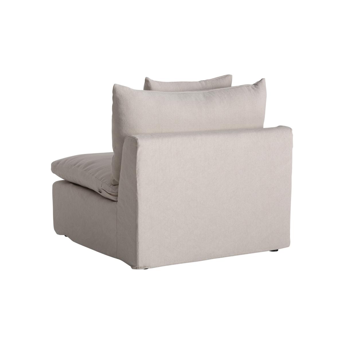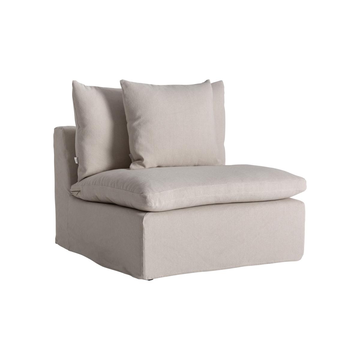 Módulo sofá central Senhane de estilo contemporáneo, fabricado en lino en color blanco roto, combinado con algodón y espuma. Compatible con: 37398,37400.