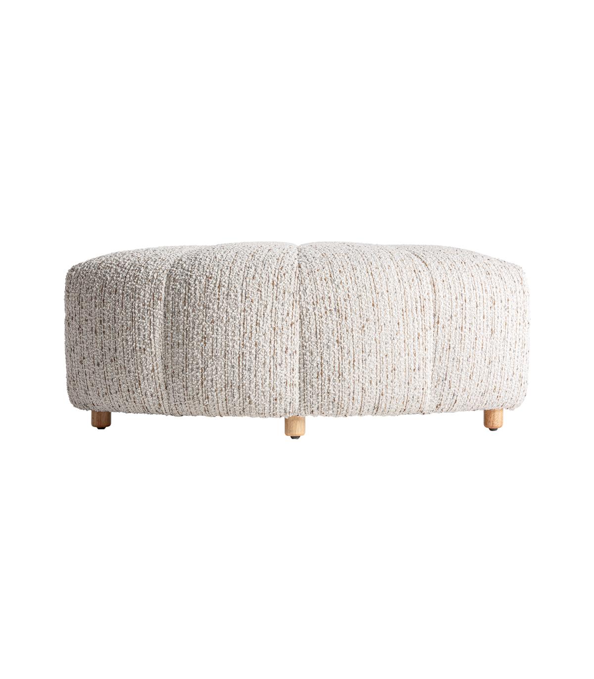 Módulo sofá reposapiés boubiers de estilo contemporáneo fabricado en madera de pino en color marrón claro con acabado natural combinado con poliéster en color blanco roto con acabado jaspeado y espuma. Compatible con: 34679.