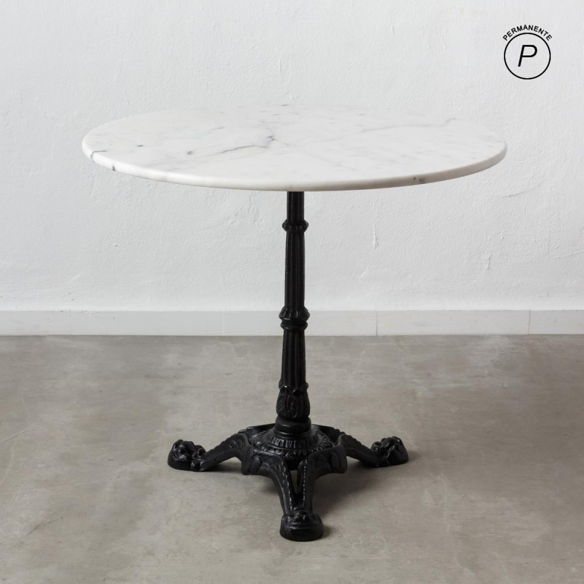 MESA COMEDOR BLANCO-NEGRO METAL-MÁRMOL 80 X 80 X 71 CM Material: hierro, mármol. Precisa montaje. El mármol es un material natural con variaciones en su aspecto.
