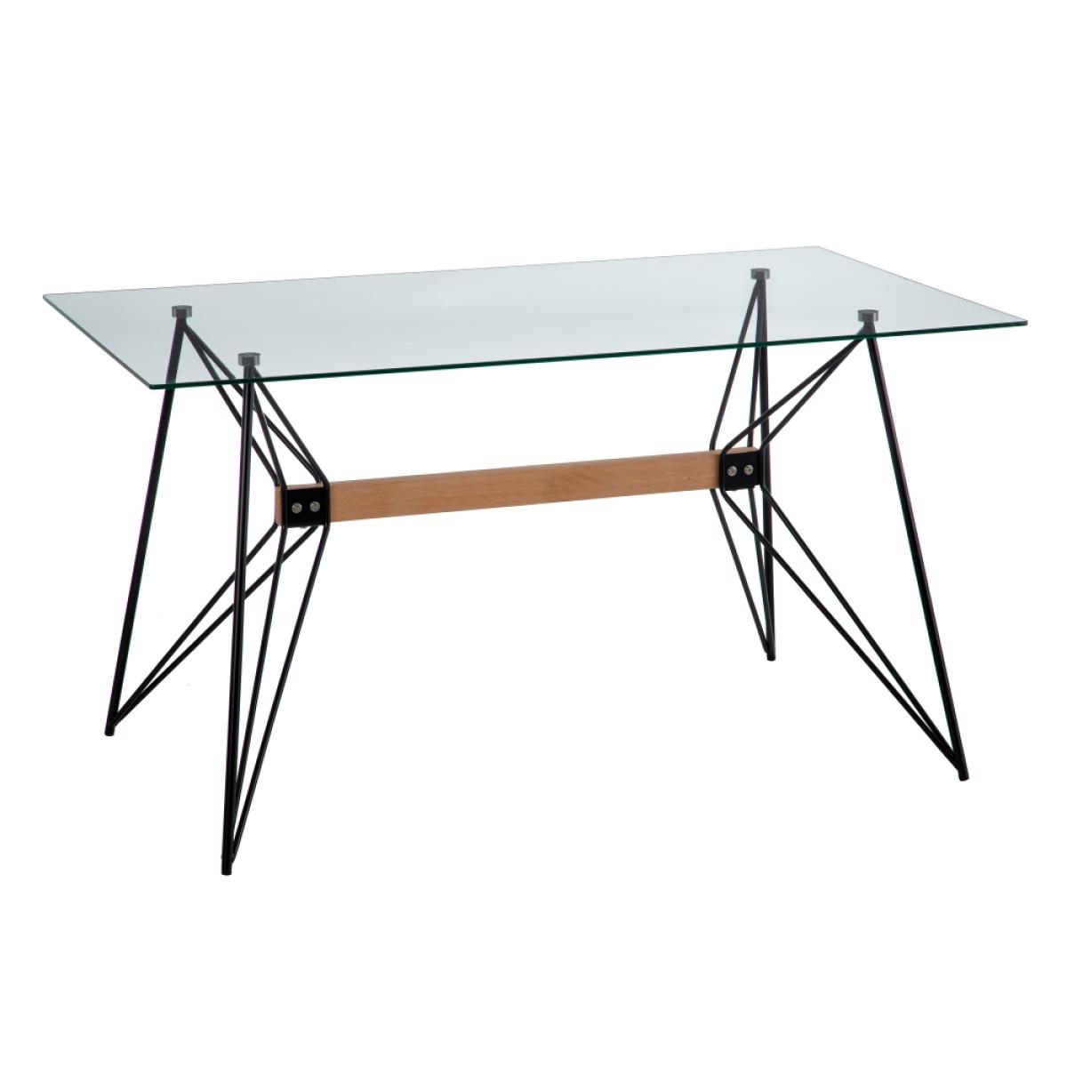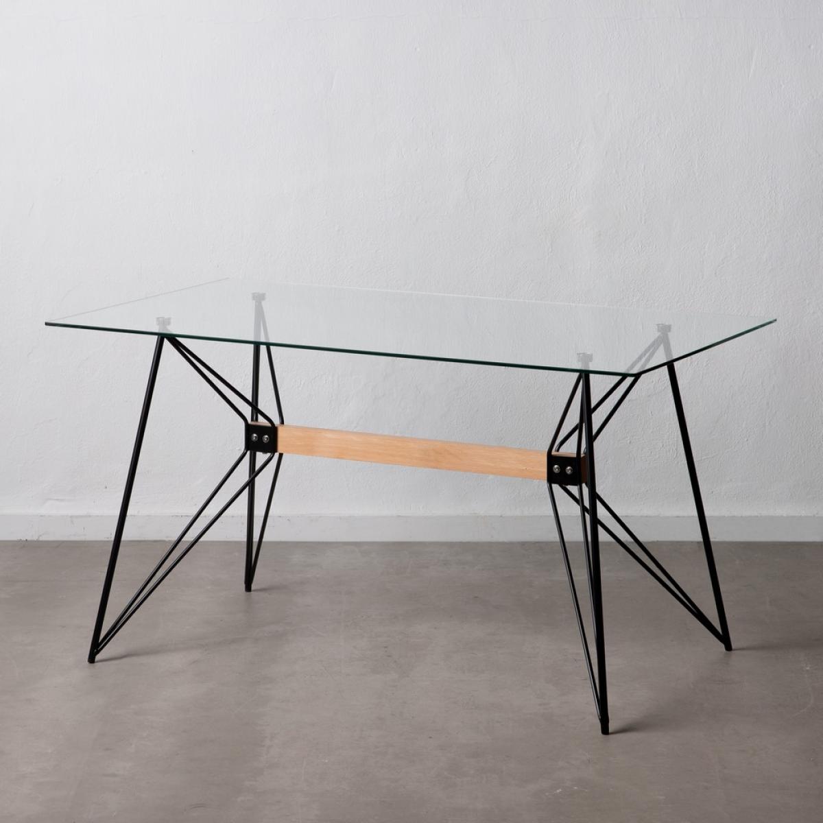 MESA COMEDOR NEGRO METAL-CRISTAL SALÓN 140 X 80 X 75 CM Material: Cristal templado (8mm), metal, madera de haya.