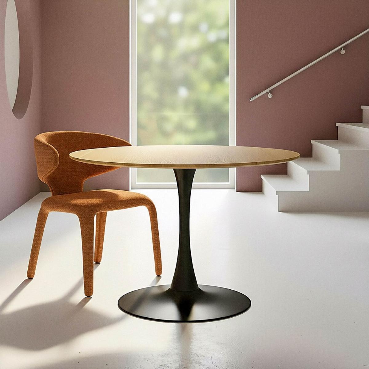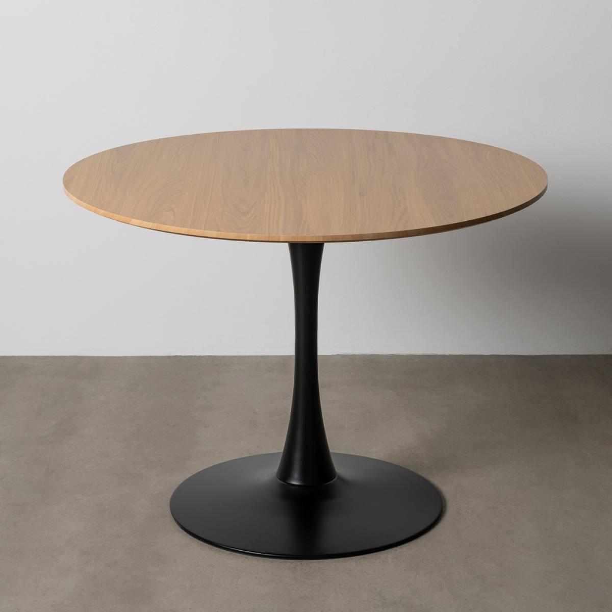 MESA COMEDOR NATURAL-NEGRO DM-METAL 100 X 100 X 75 CM Material: Dm con melamina - metal (hierro) Diámetro base: 60cm. Grueso top: 1.7cm. Precisa montaje.