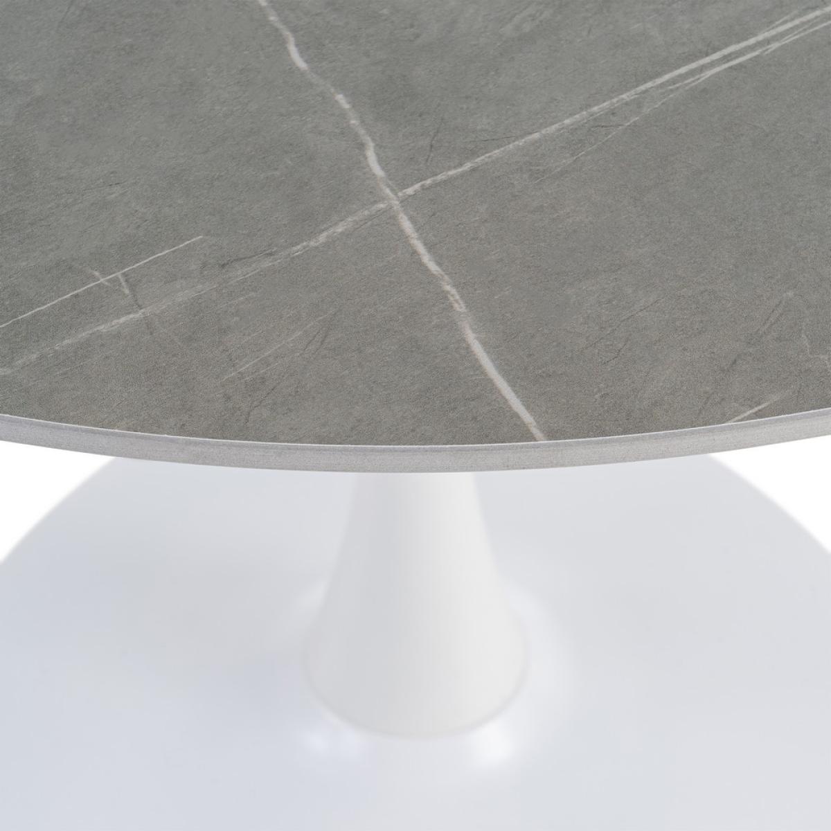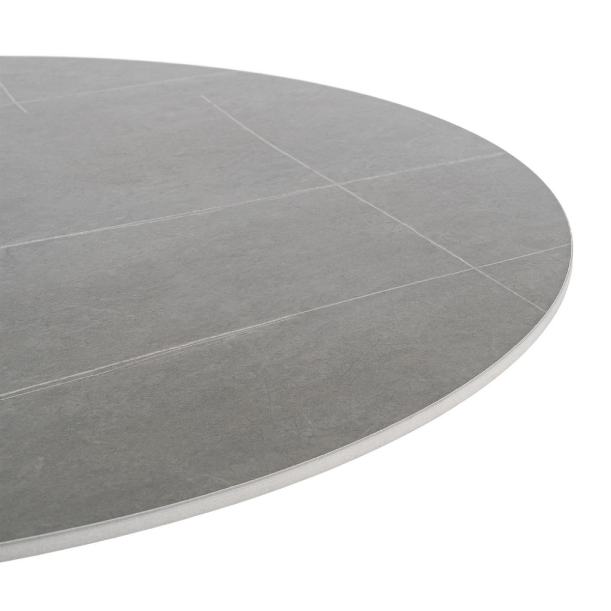 MESA COMEDOR GRIS PIEDRA SINTERIZADA 100 X 100 X 75 CM Material: Piedra sinterizada - metal (hierro) Diámetro base: 60cm. Grueso top: 1.1cm. Precisa montaje.
