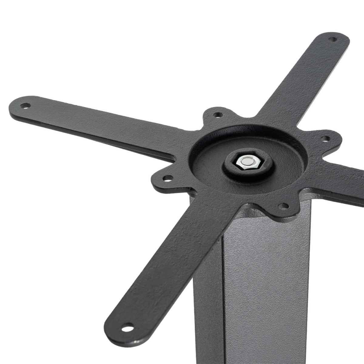 PATAS PARA MESA NEGRO HIERRO 45 X 45 X 108 CM Material: hierro fundido. Soporte tablero: 45x45cm. Tubo: 8x8cm. Base: 40x40cm. Apto para tableros cuadrados hasta 60x60cm y tableros redondos hasta diámetro 70cm.