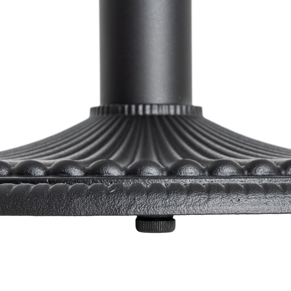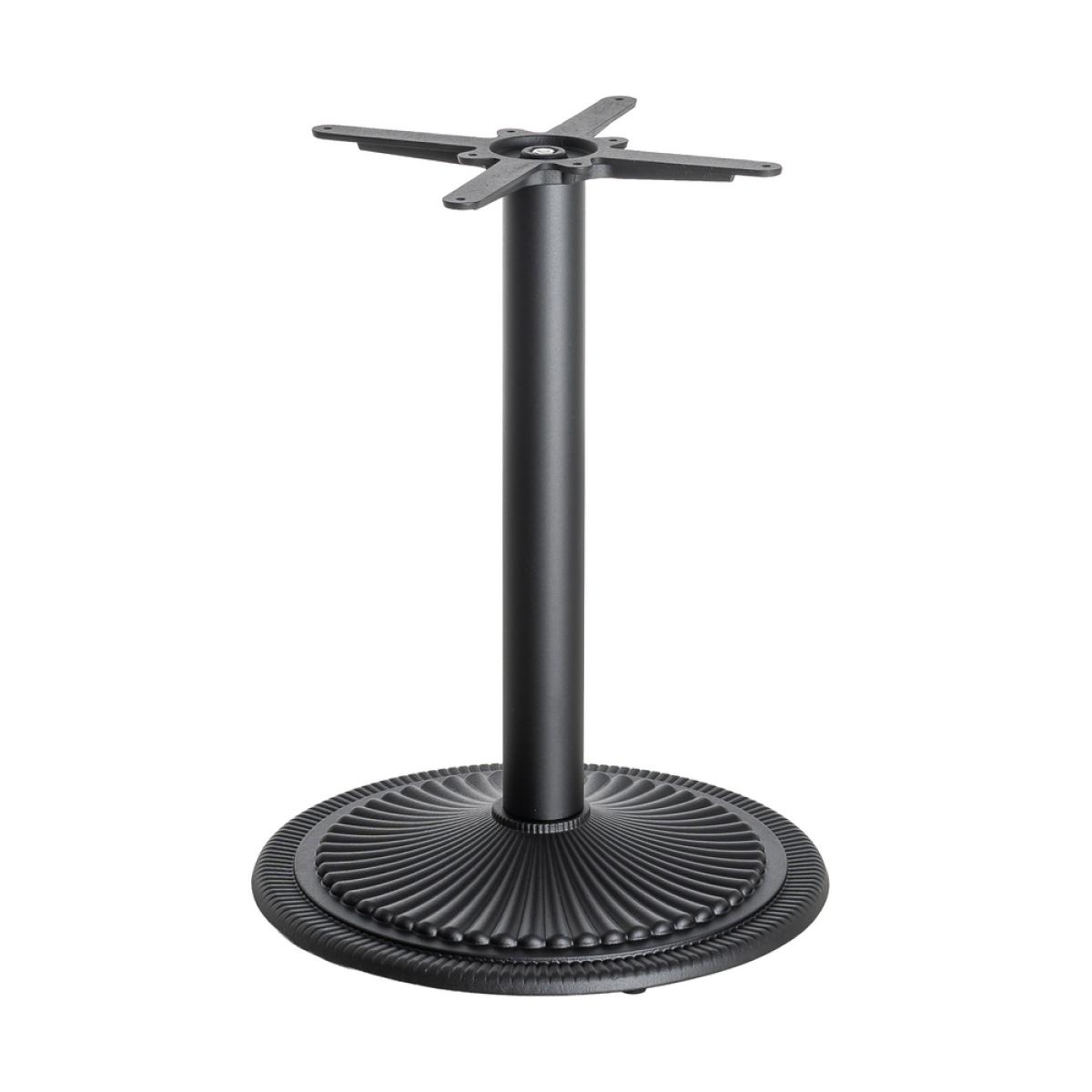 PATAS PARA MESA NEGRO HIERRO 55 X 55 X 72 CM Material: hierro fundido. Soporte tablero: 45x45cm. Diámetro tubo: 7,6cm. Diámetro base: 55cm. Apto para tableros cuadrados hasta 80x80cm y tableros redondos hasta diámetro 100cm.