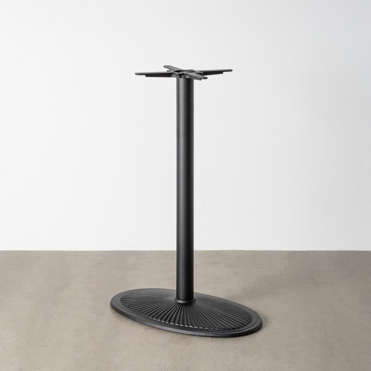 PATAS PARA MESA NEGRO HIERRO 46 X 76 X 108 CM Material: hierro fundido. Soporte tablero: 45x45cm. Diámetro tubo: 7,6cm. Base: 46X76cm. Apto para tableros rectangulares hasta 110x70cm y tableros ovalados hasta 120x80cm.