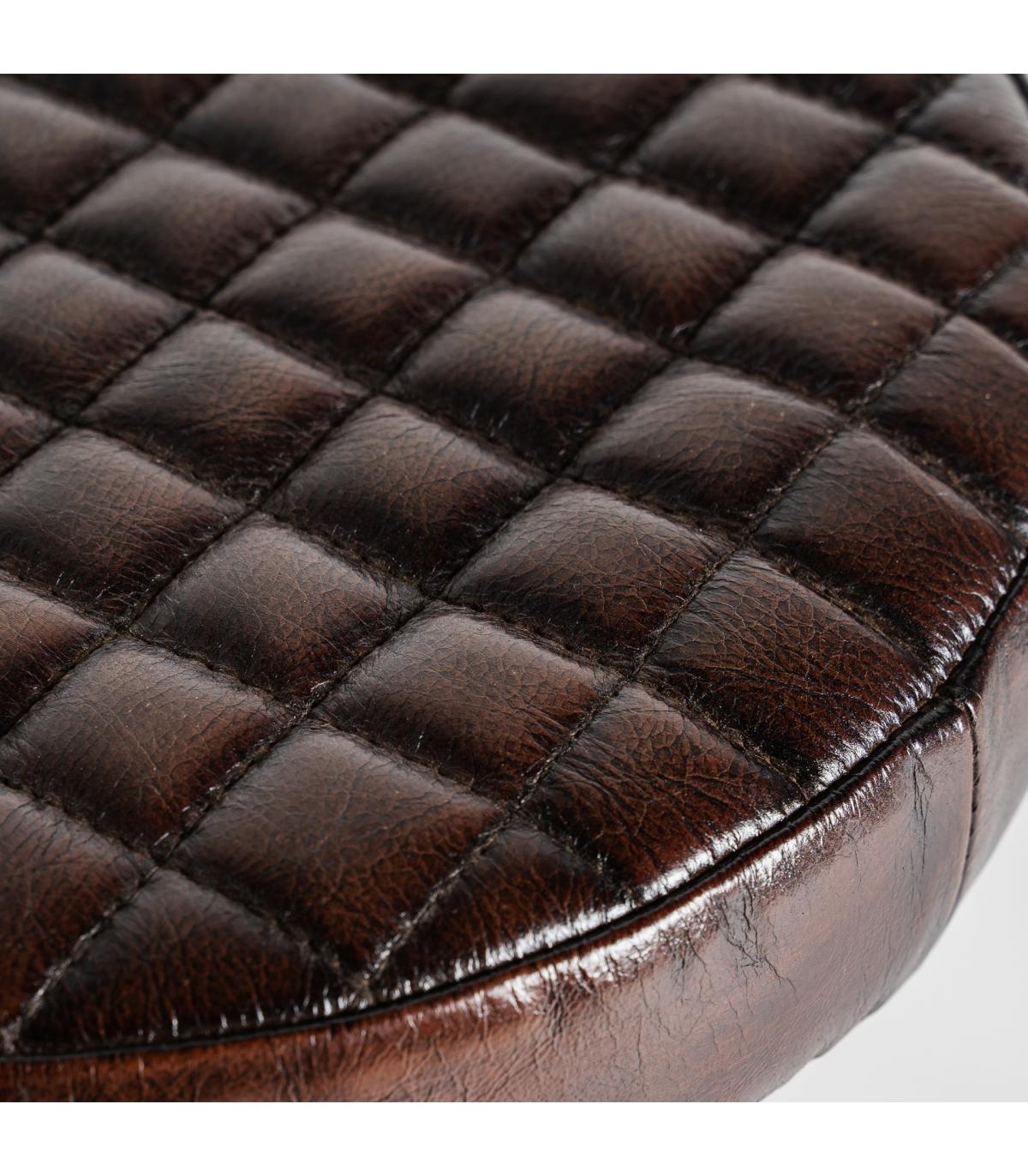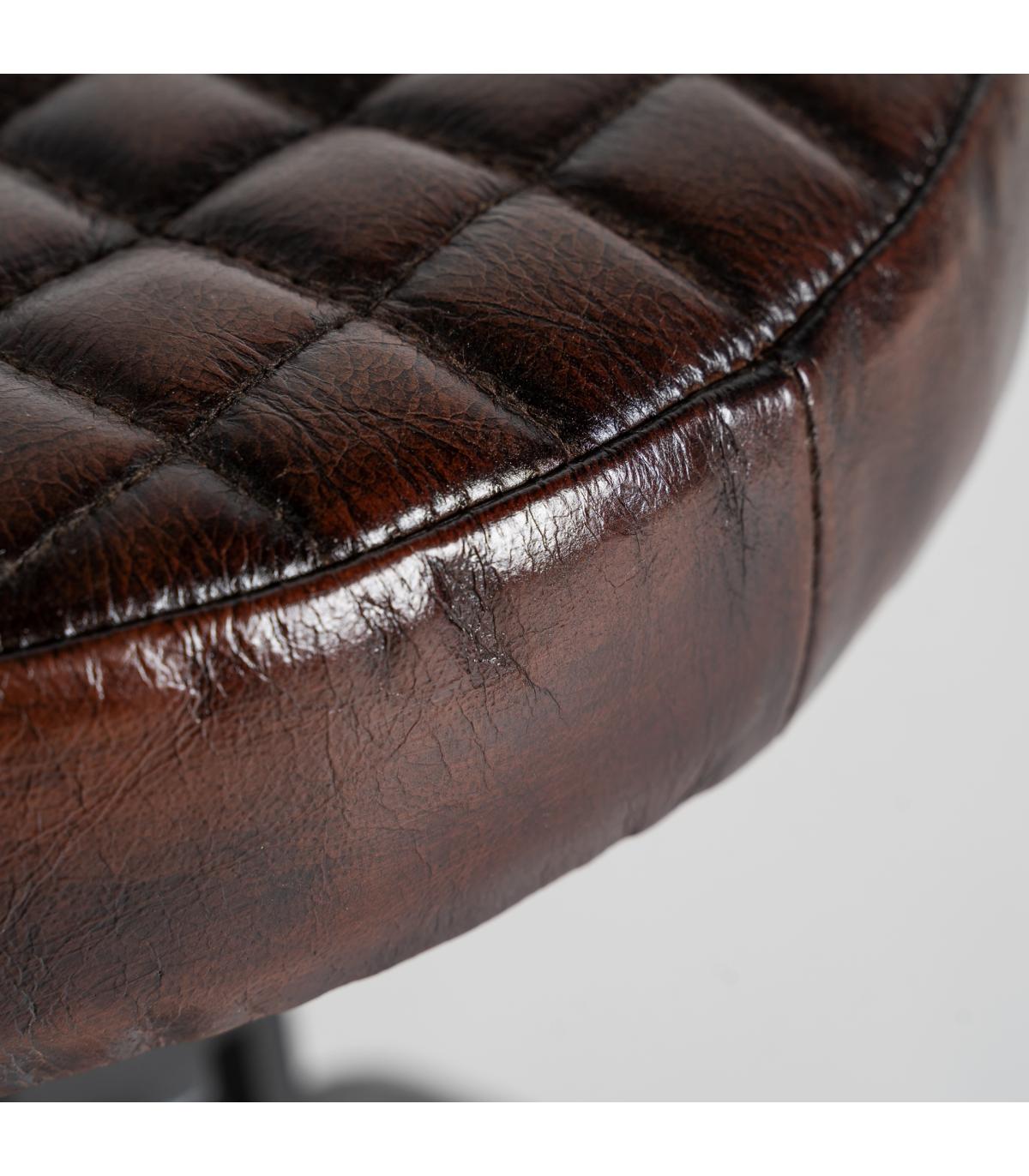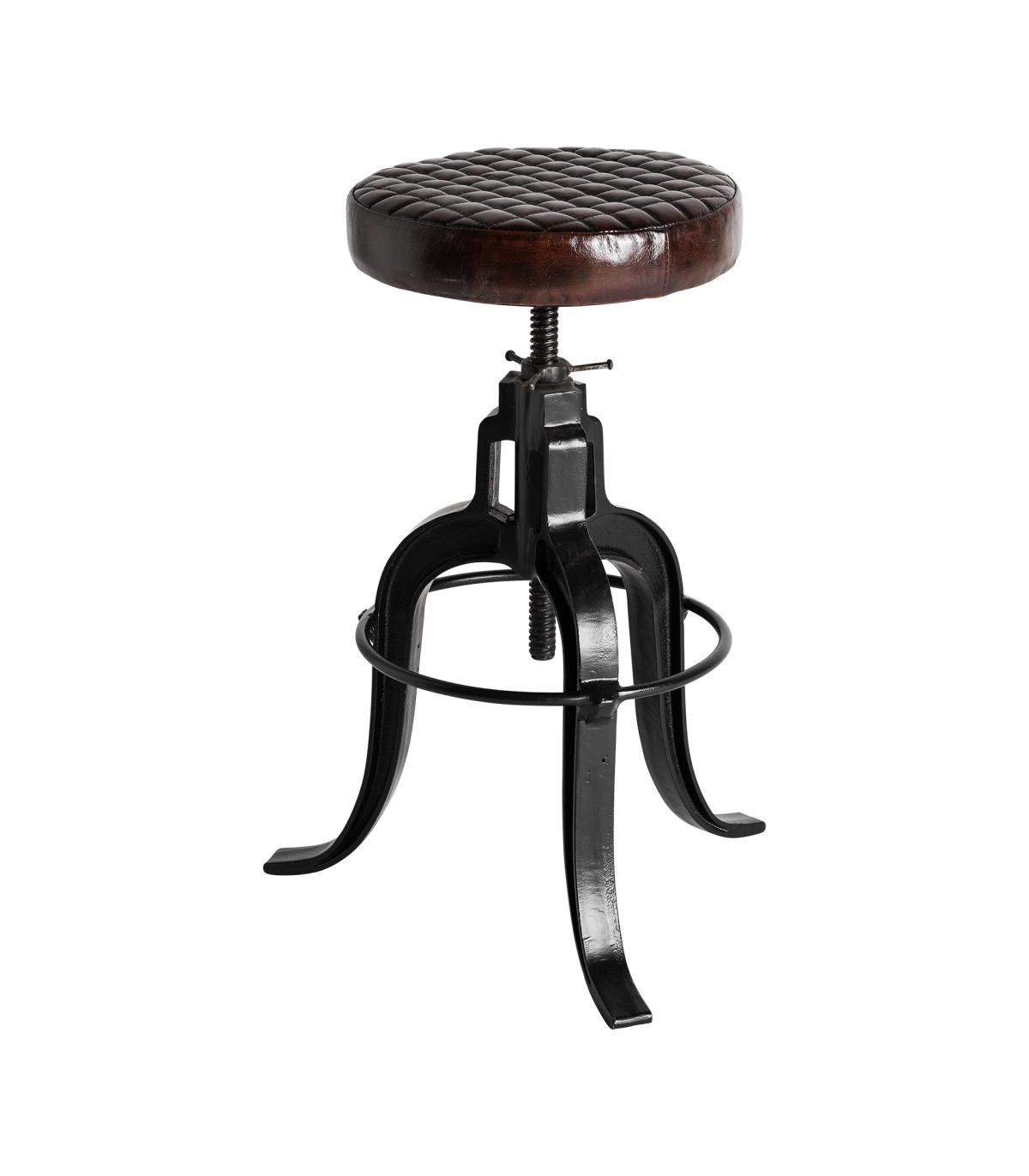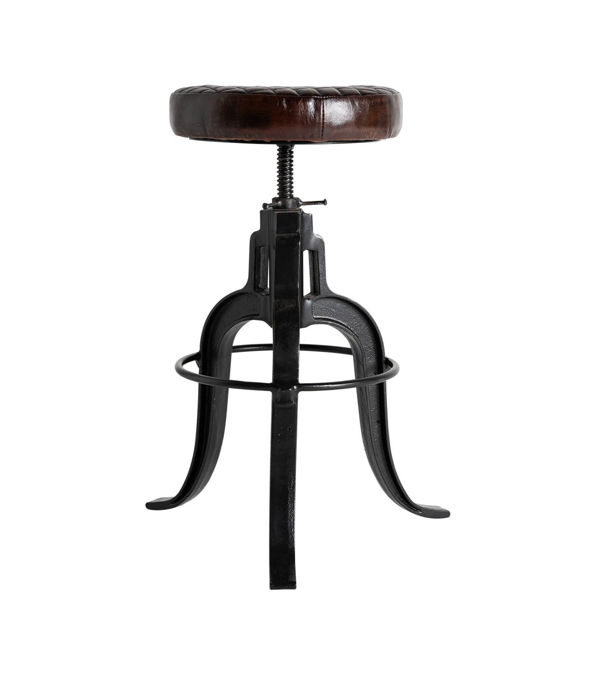 Taburete ripley de estilo vintage fabricado en hierro en color negro combinado con cuero en color marrón.