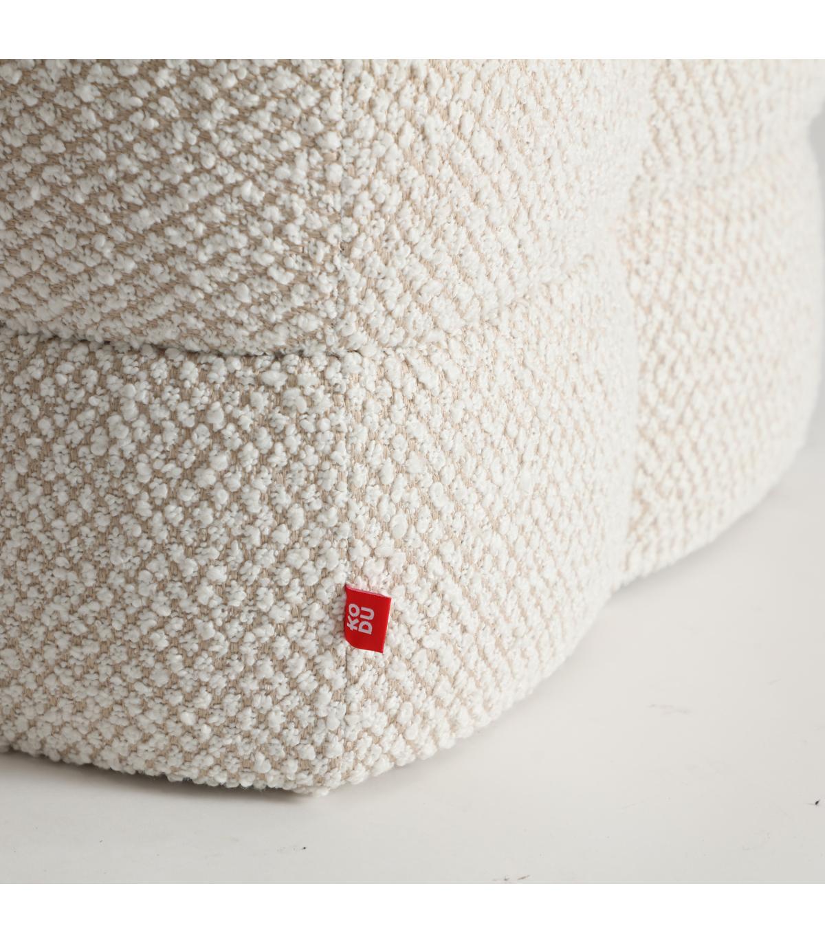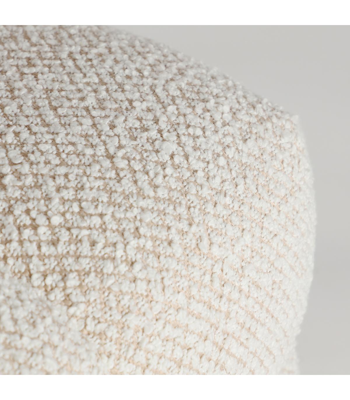 Reposapiés, fabricado en poliéster en color beige, combinado con espuma y madera de pino.