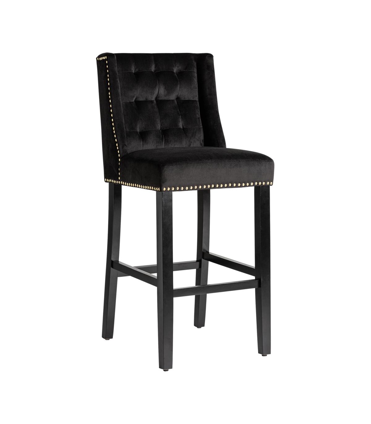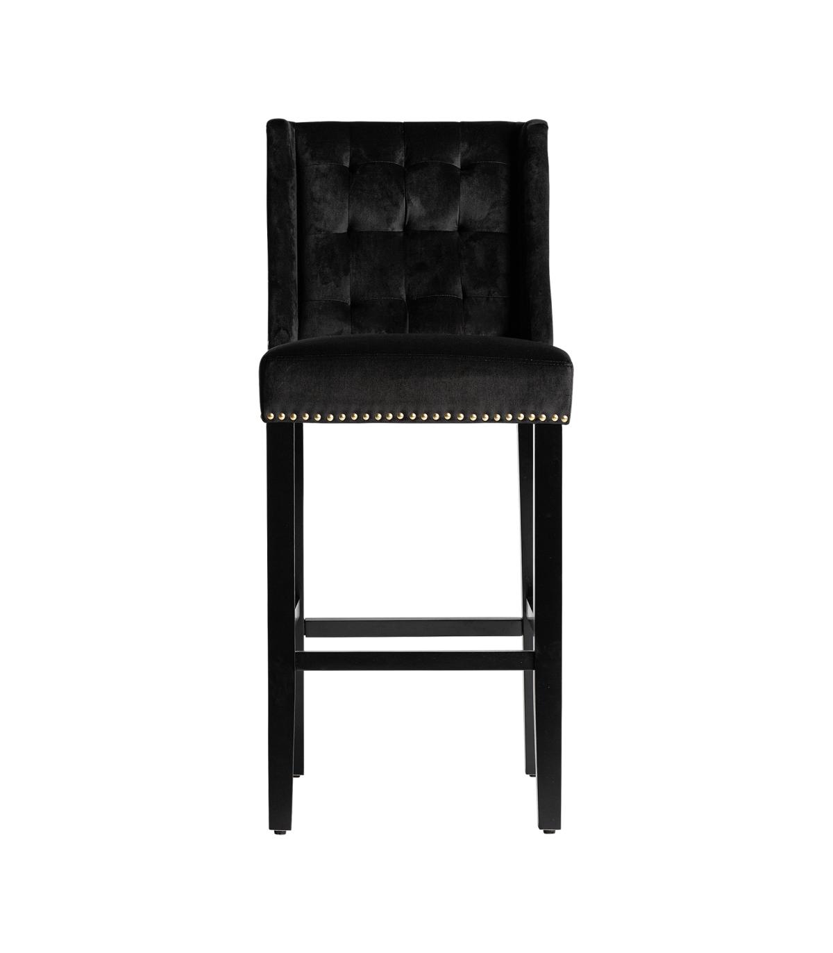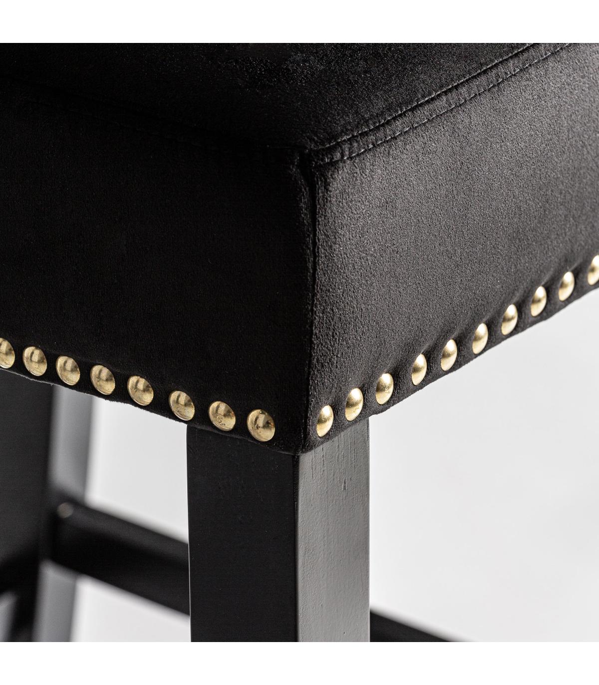 Taburete capitoné dachwig de estilo contemporáneo fabricado en madera de pino en color negro combinado con terciopelo en color negro. Producto desmontable.