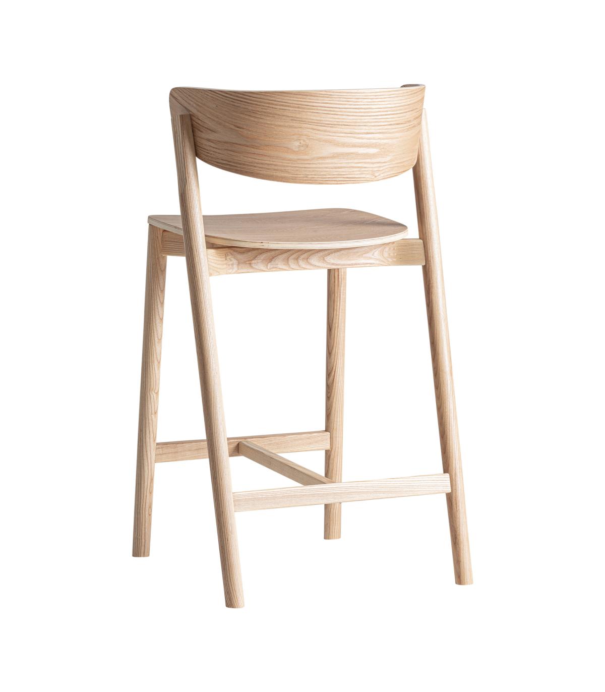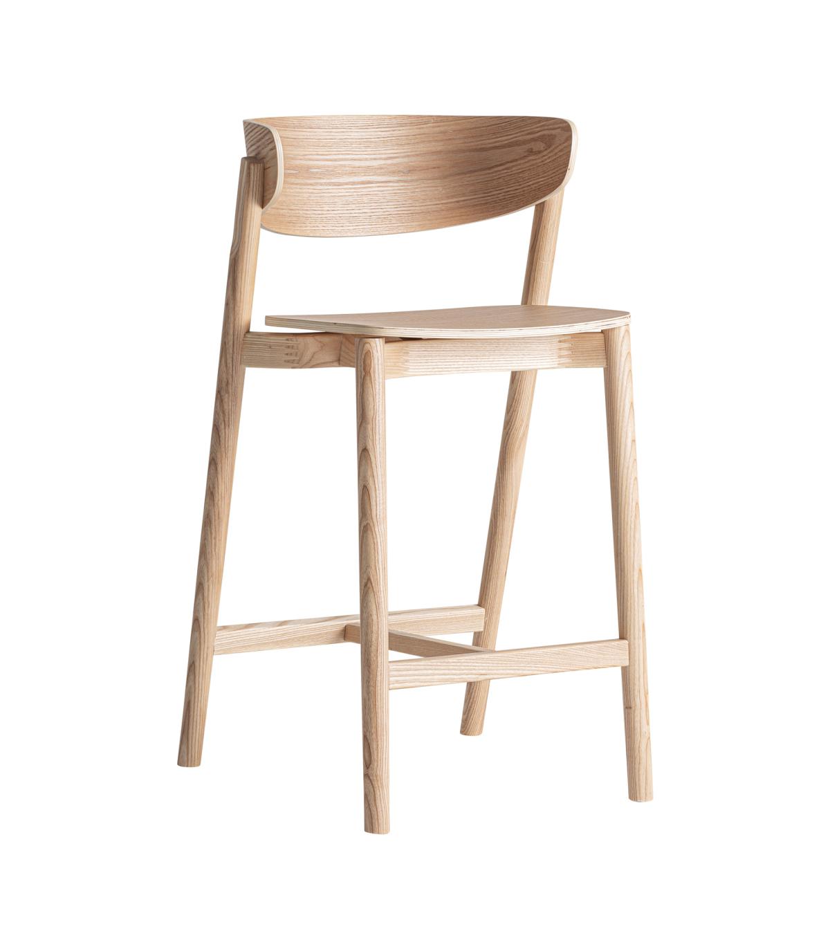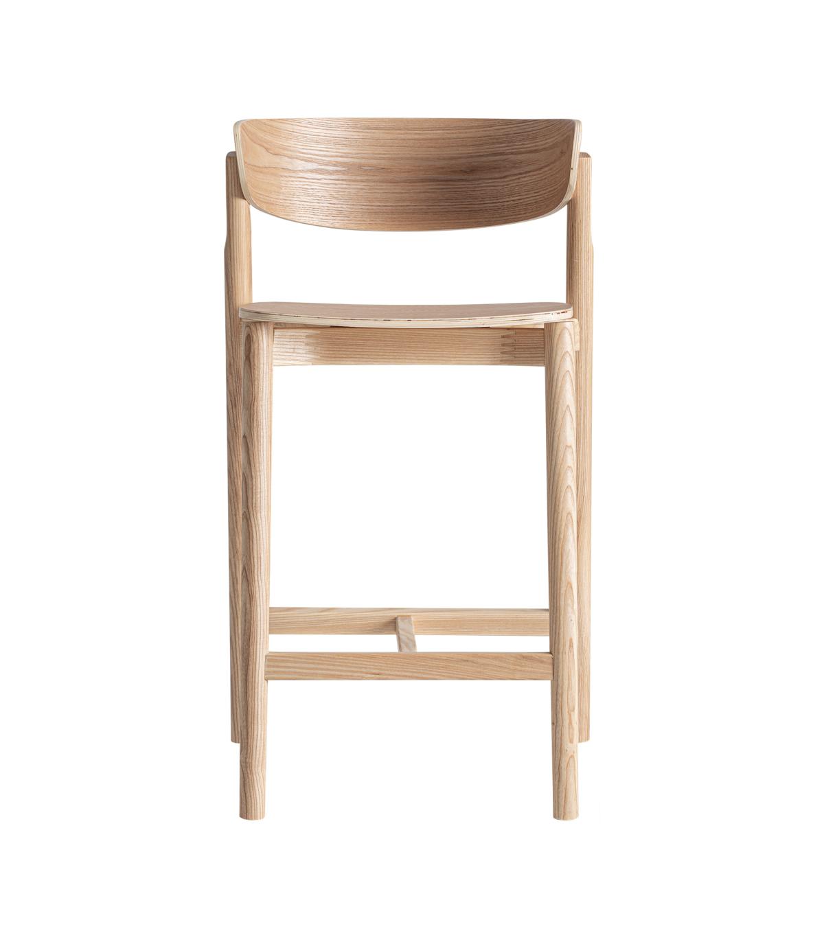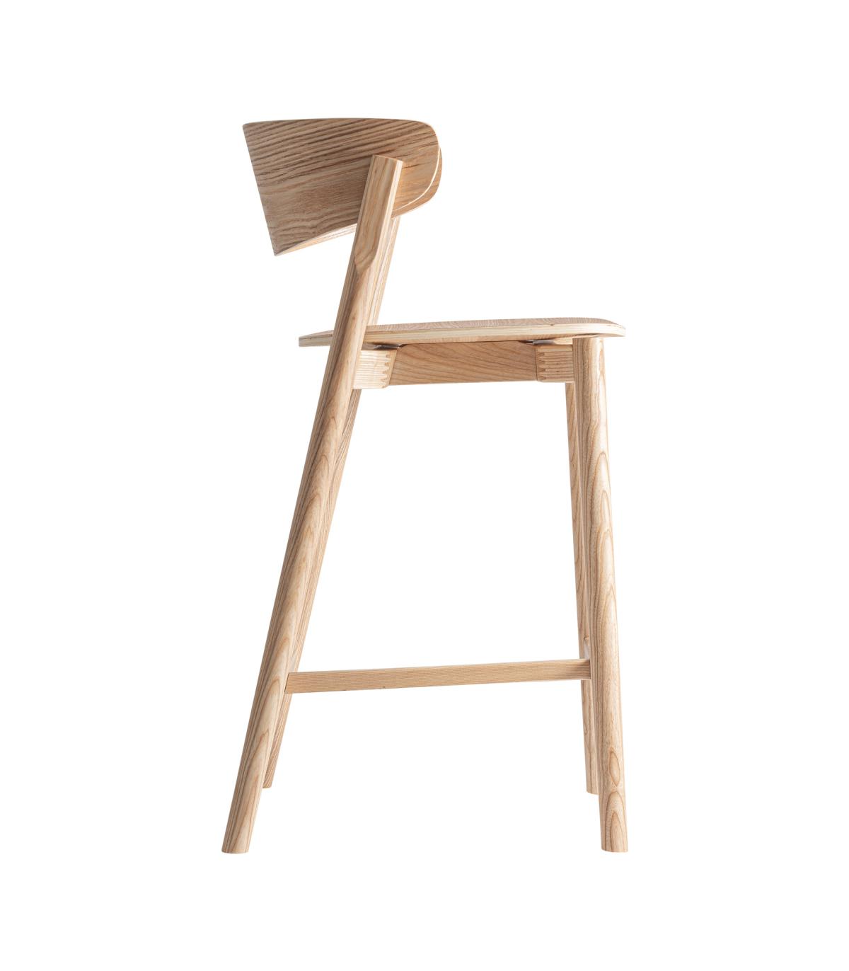 Taburete, fabricado en madera de fresno en color marrón claro, combinado con madera contrachapada.