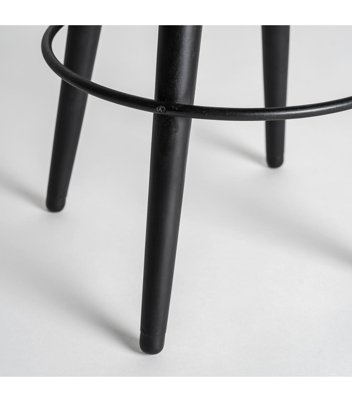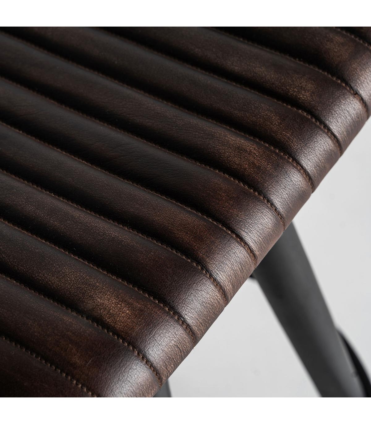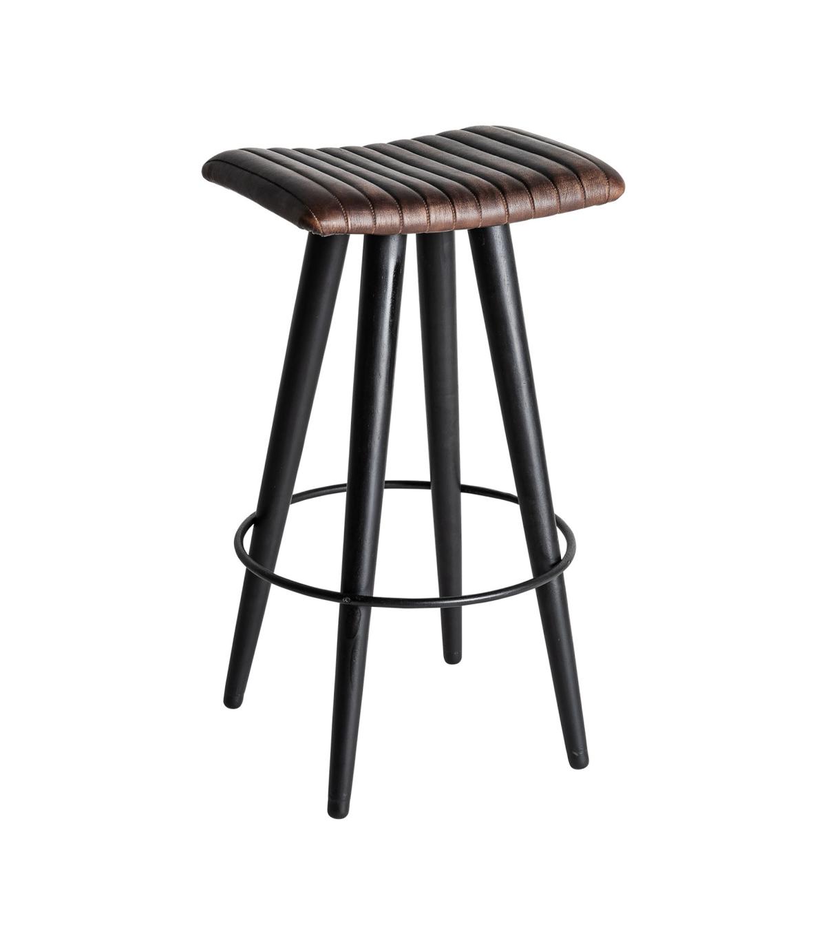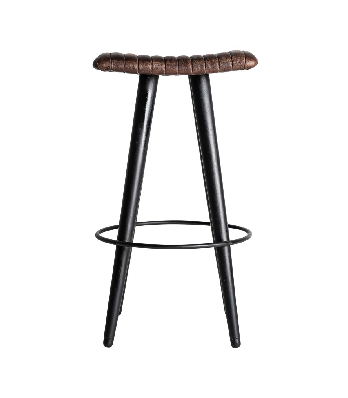 Taburete Befaux de estilo vintage, fabricado en piel en color marrón, combinado con hierro en color negro con acabado mate y madera en color negro.