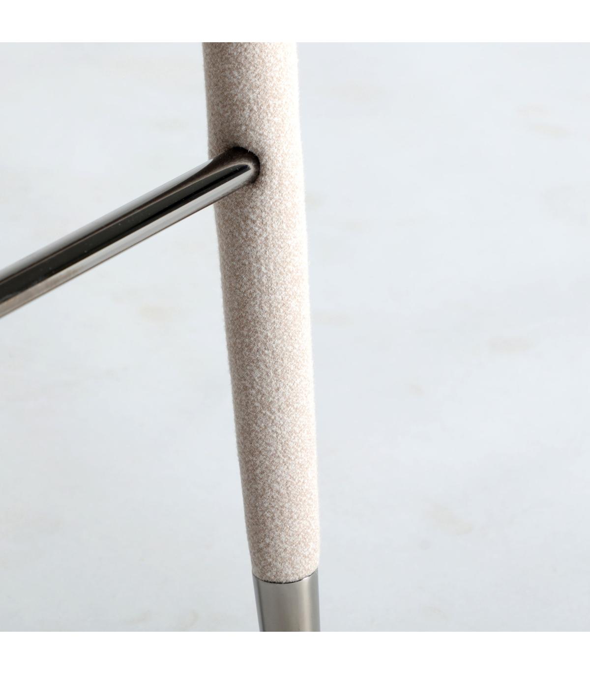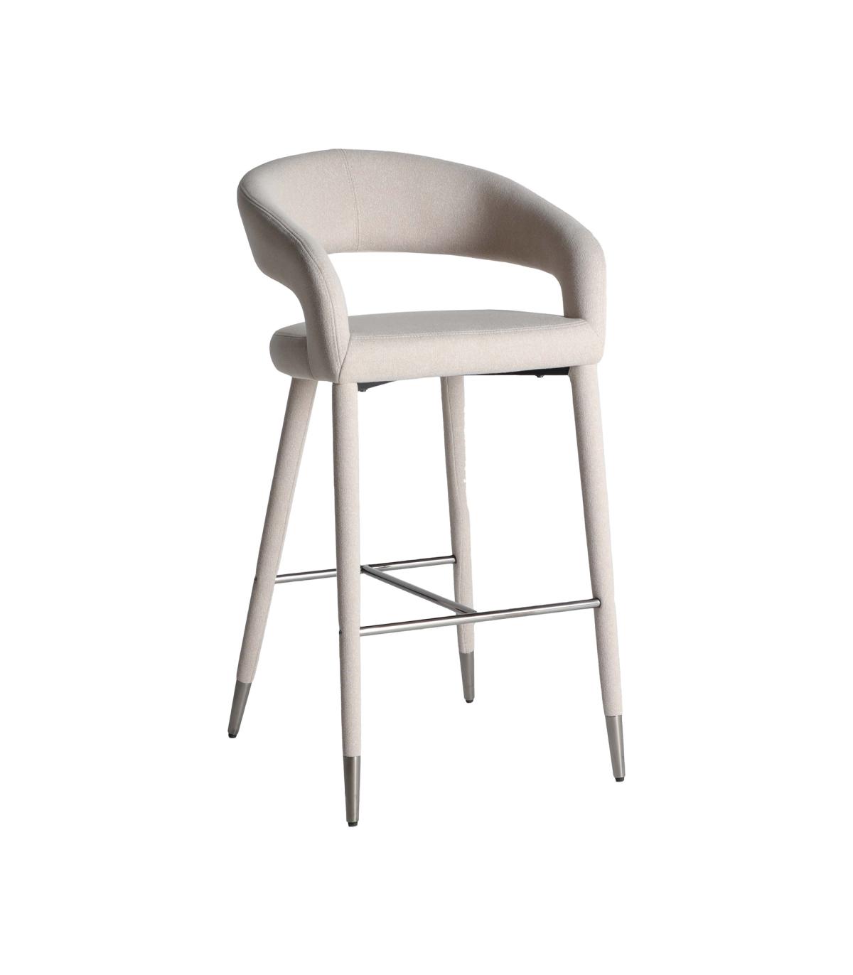 Taburete Cassel de estilo art deco, fabricado en poliéster en color blanco roto, combinado con acero inoxidable en color plata con acabado brillo. Producto desmontable.