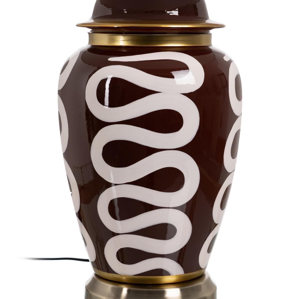 LÁMPARA MESA BLANCO-MARRÓN PORCELANA 24 X 24 X 50 CM Material: PORCELANA Y LINO. Pintado a mano. Medidas de la tulipa:35*42*28cm. Voltios: 220-240V. Casquillo: E27. Bombilla: 1*60W (no incluida). Cable color negro. Longitud del cable:2.50m