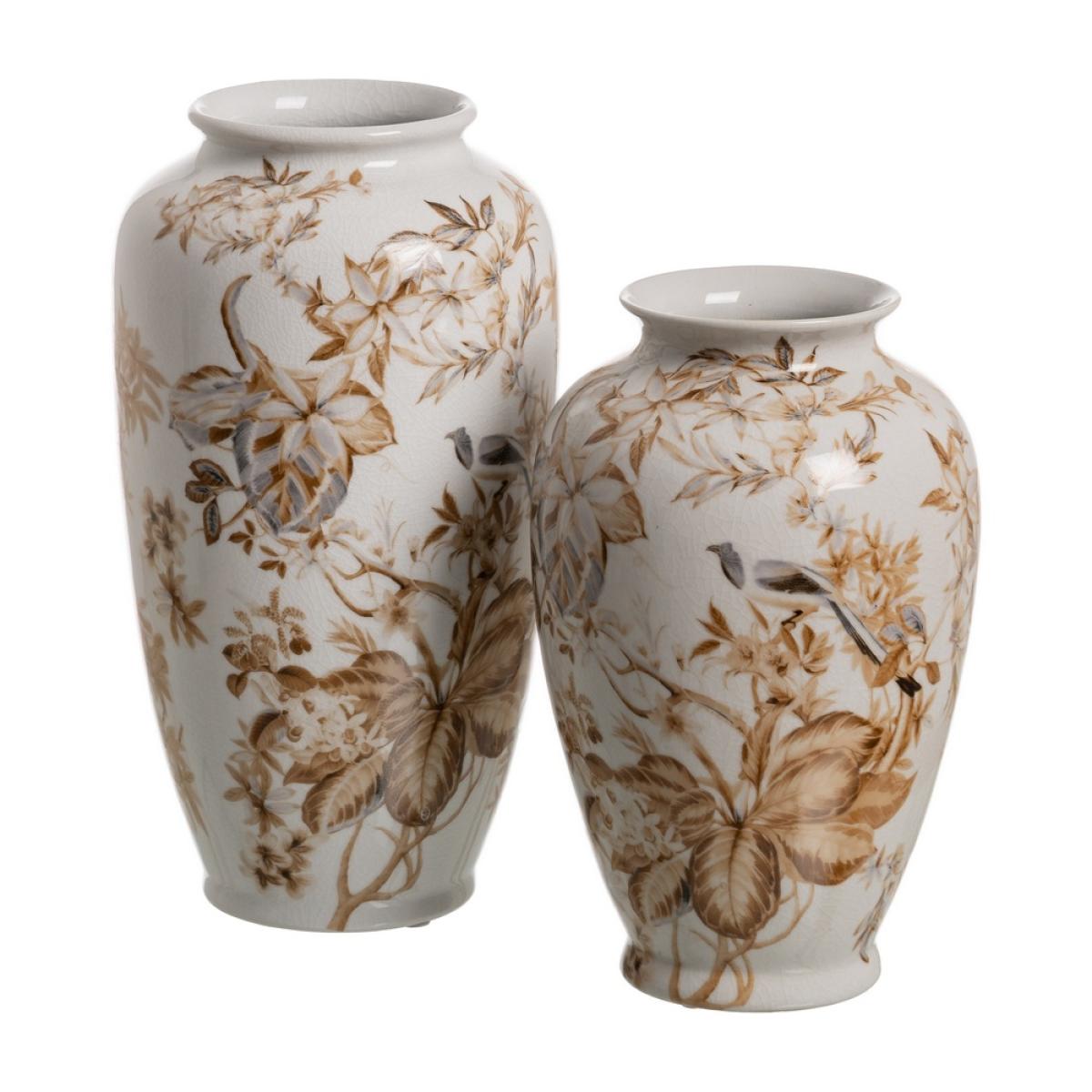 DECORACIÓN - JARRONES Y BANDEJAS 613445 - JARRÓN BLANCO-MARRÓN PORCELANA 19 X 19 X 33 CM