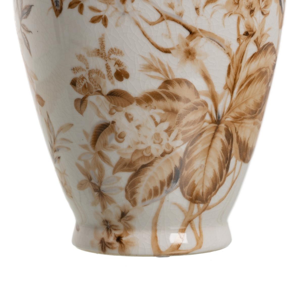JARRÓN BLANCO-MARRÓN PORCELANA 19 X 19 X 33 CM .